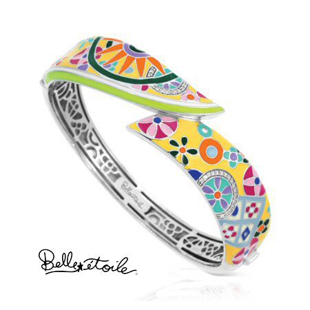 Description: Hand-painted multicolored Italian enamel with pavé-set stones set into rhodium-plated, nickel allergy-free, 925 sterling silver.