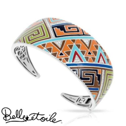 Description: Hand-painted multicolored Italian enamel with pavé-set stones set into rhodium-plated, nickel allergy-free, 925 sterling silver.