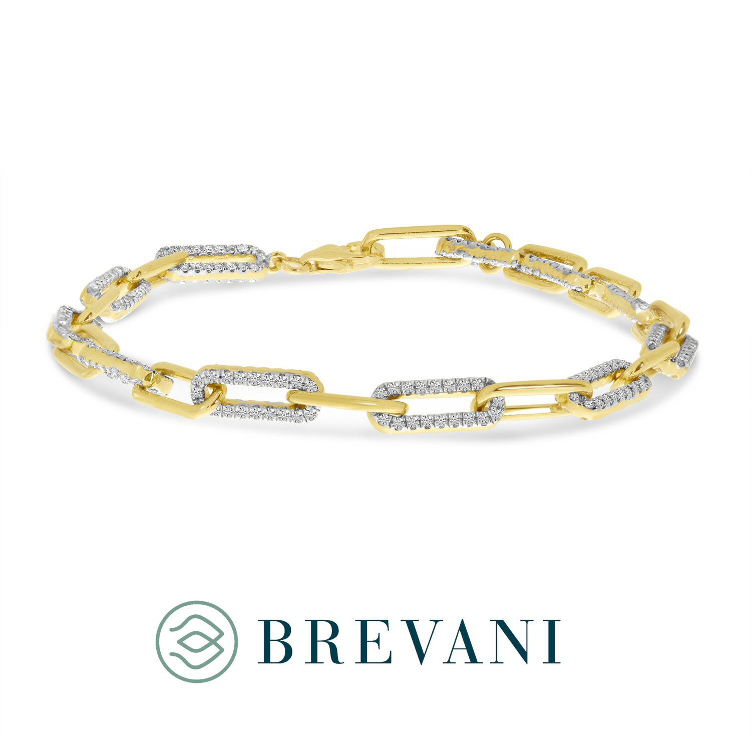 Gorgeous 14 karat yellow gold paper clip bracelet. There are 1.32cttw diamonds prong set in every other paper clip link. What makes this bracelet different from other paper clip bracelets, is that the diamonds are set on both side of the paper clip so that it doesn’t matter if the links flip! 7″ long.