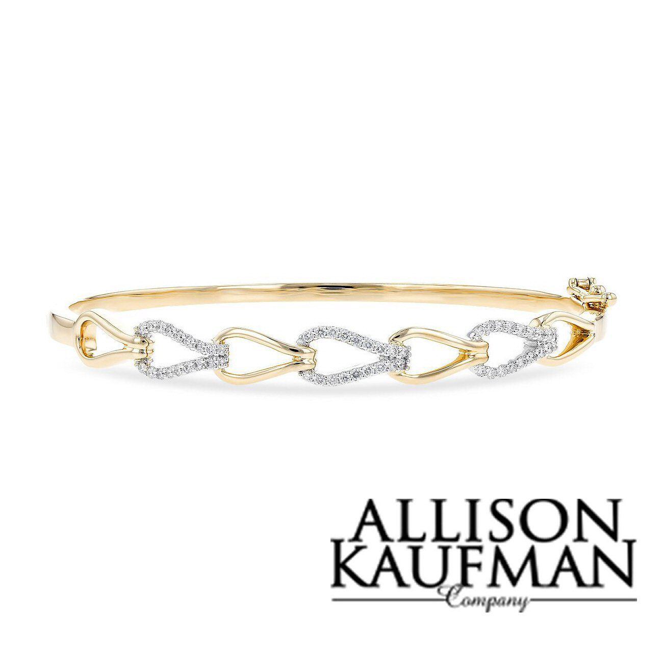 Lovely 14 karat yellow and white gold diamond bangle bracelet. The bangle consists of alternating loops of high-polish yellow gold and white gold with 0.40cttw diamonds. The round brilliant cut diamonds are SI-GH in clarity/color.