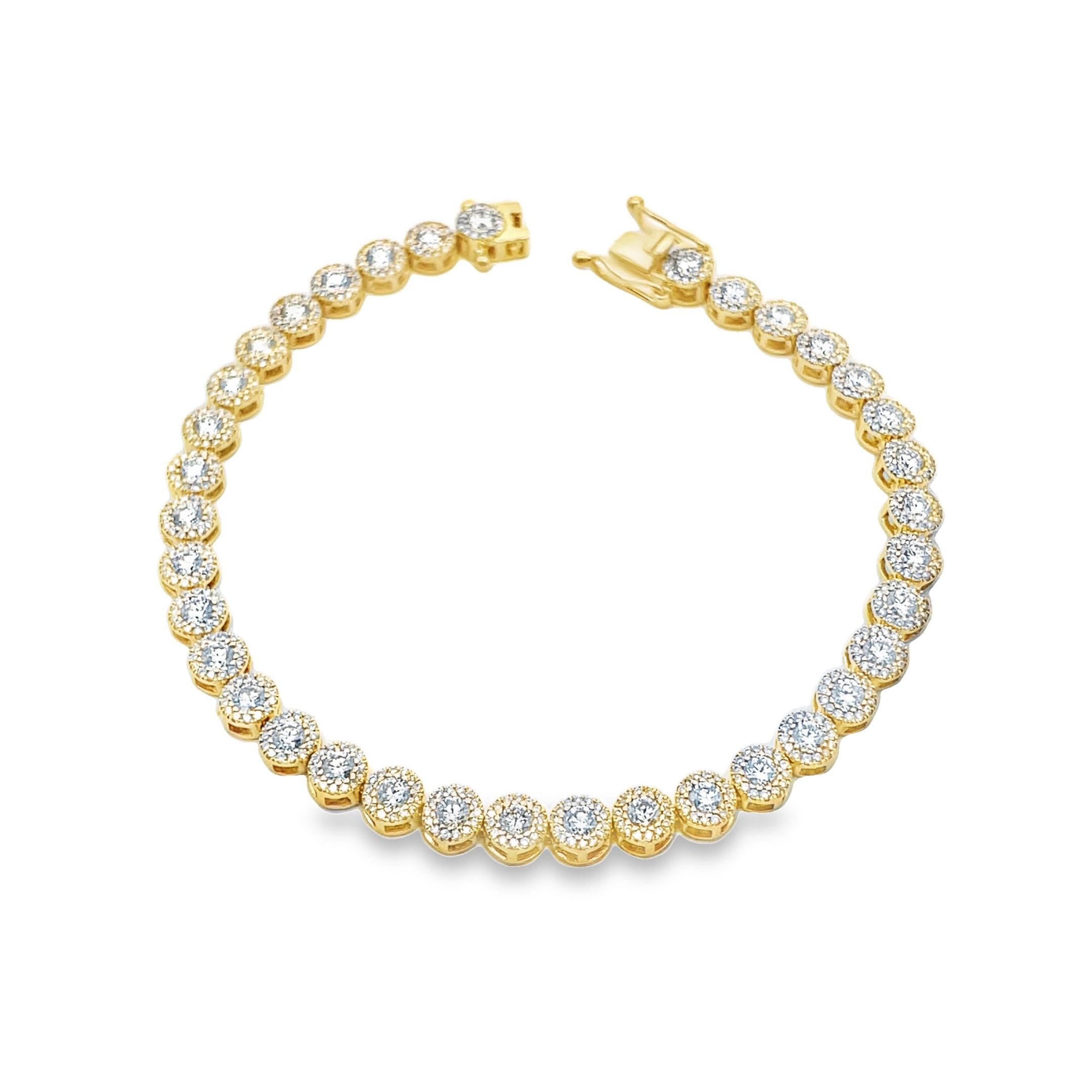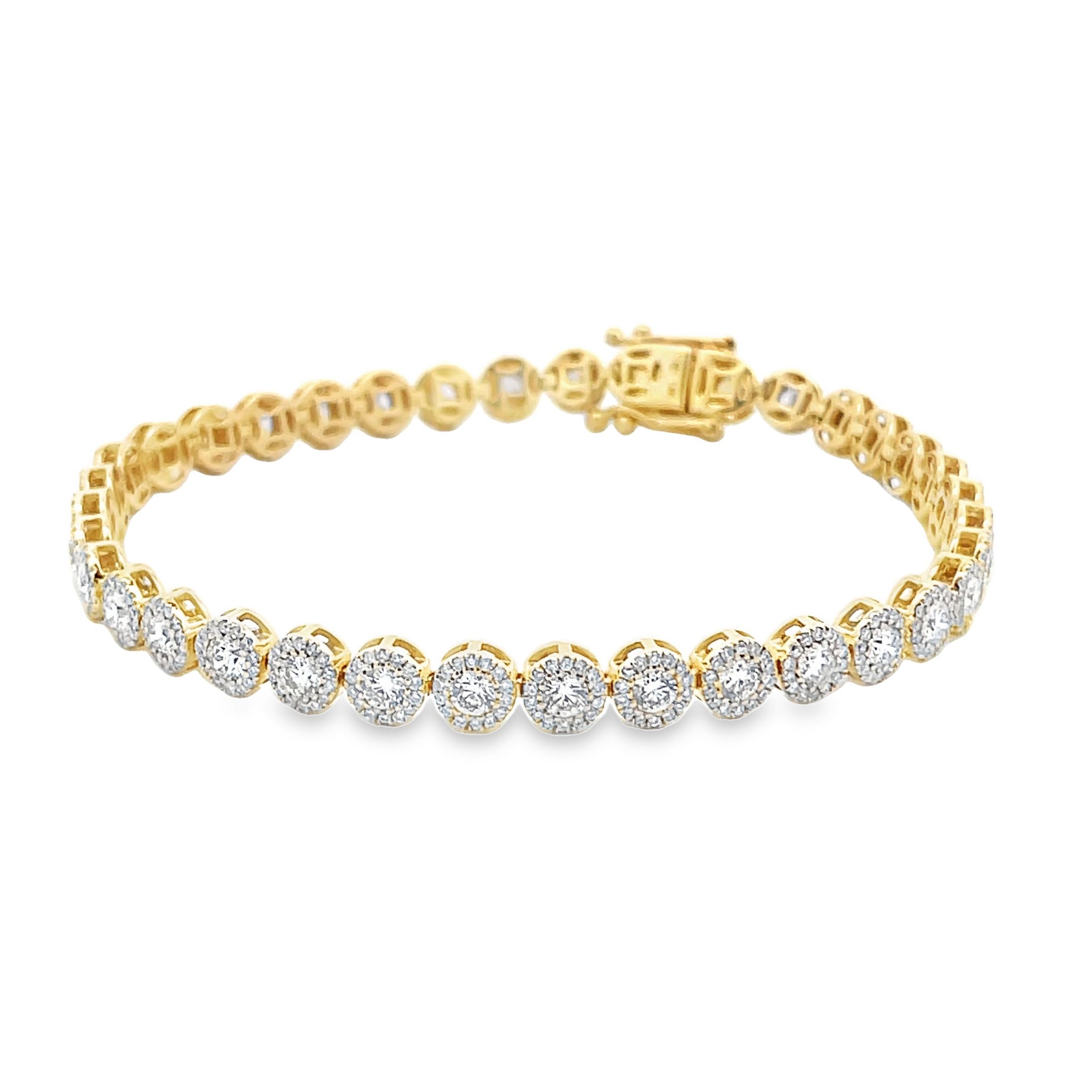 14 karat yellow gold 3.8cttw diamond bracelet consisting of 36 round brilliant cut diamonds with halos. 7″