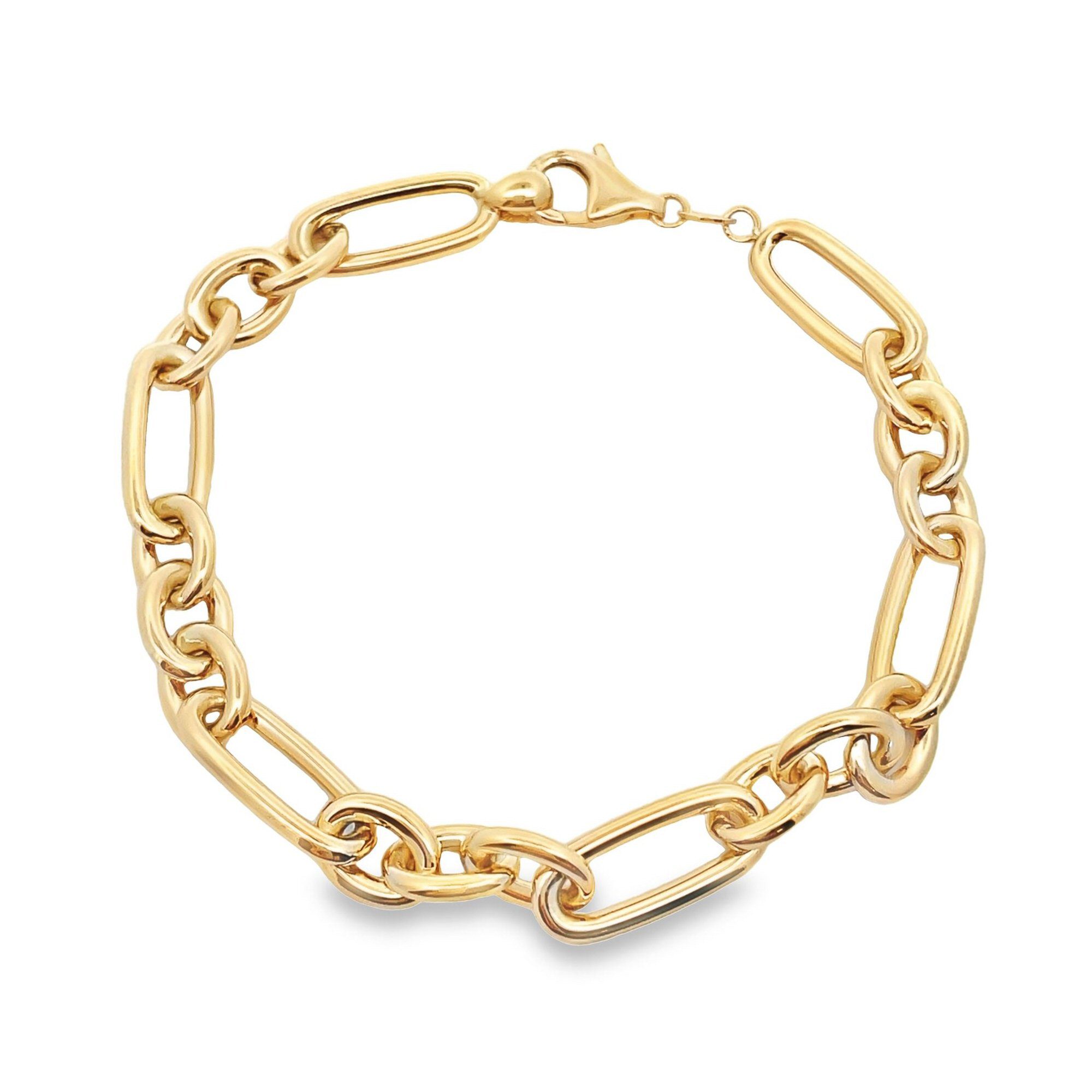 14 karat yellow gold 7.5mm wide fancy link bracelet, 7.5″ long