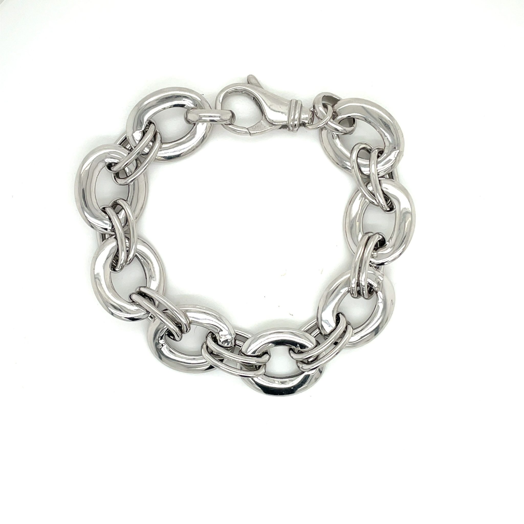 Sterling silver oval link bracelet-7.5″ long. Rhodium plated to be hypo-allergenic and tarnish free.