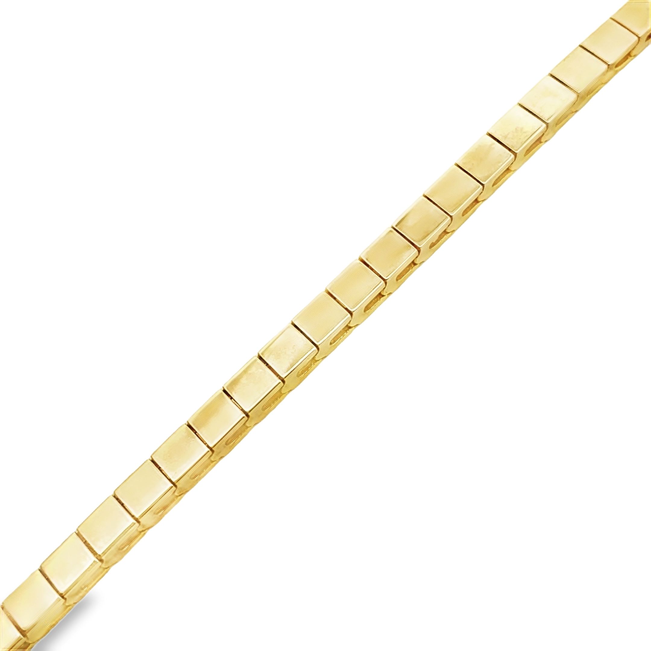 Create a bracelet that is unique to you! This 14 karat yellow gold add-a-diamond bracelet is approximately 3mm wide and 7.5″ long.