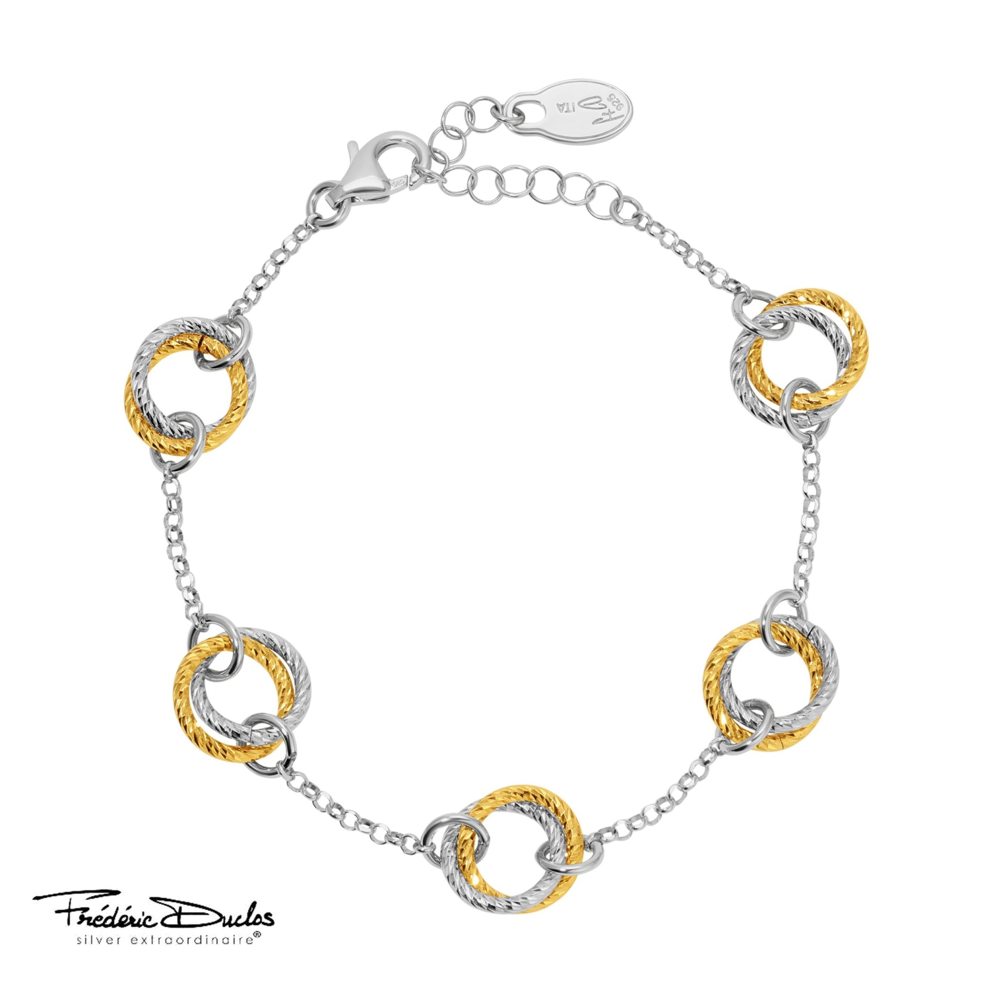 Sterling silver and 18 karat yellow gold plated diamond cut love knot Frederic Duclos bracelet.