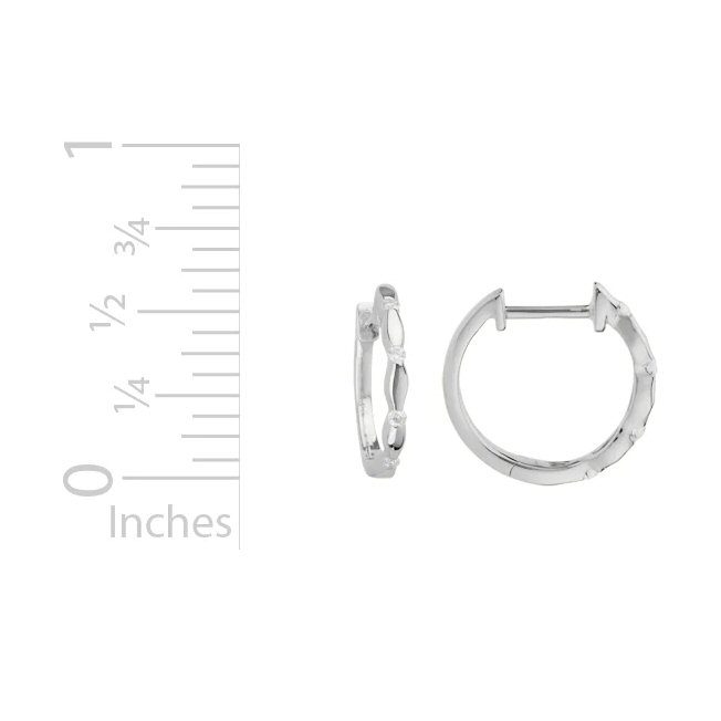 14 karat yellow gold hoop earrings with 0.11cttw diamonds. 1/2″ diameter. Also available in 14 karat white gold.