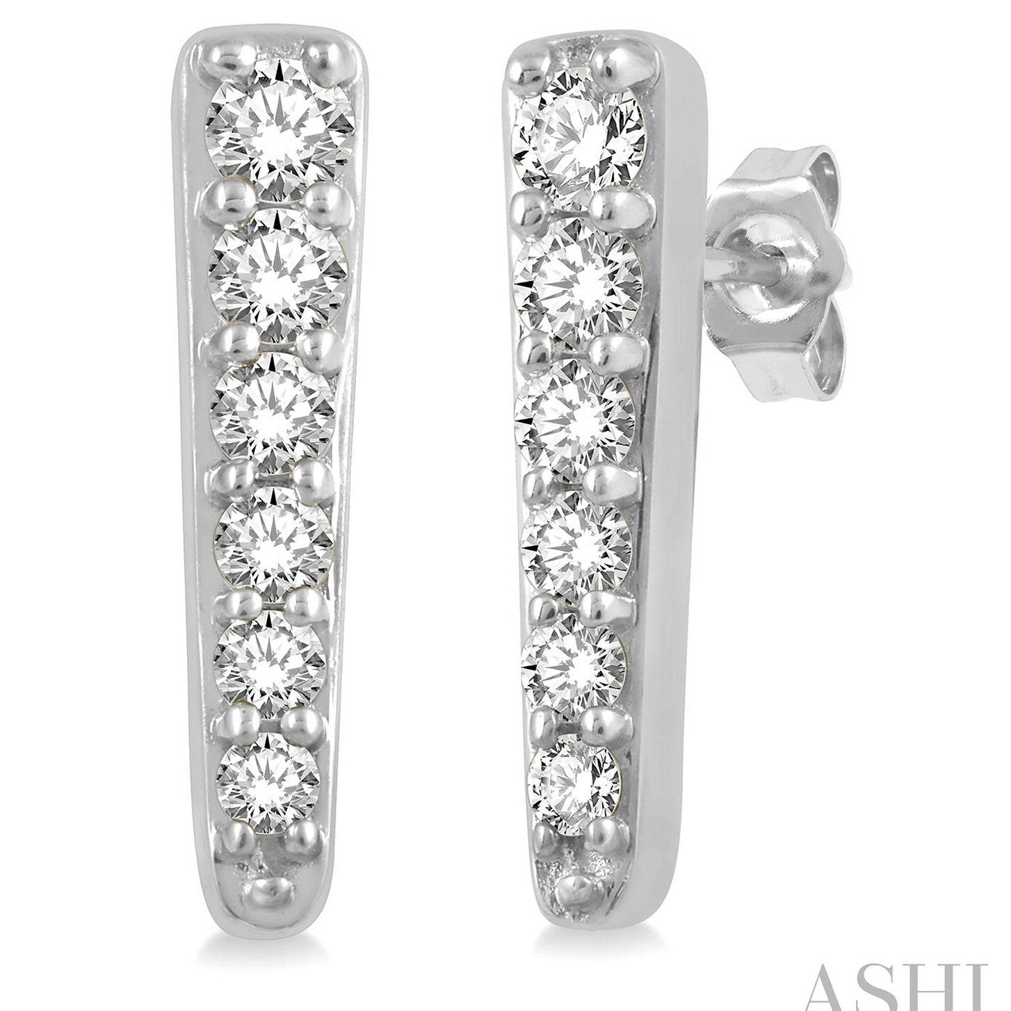 14 karat white gold 0.20cttw diamond “vertical bar” post earrings.