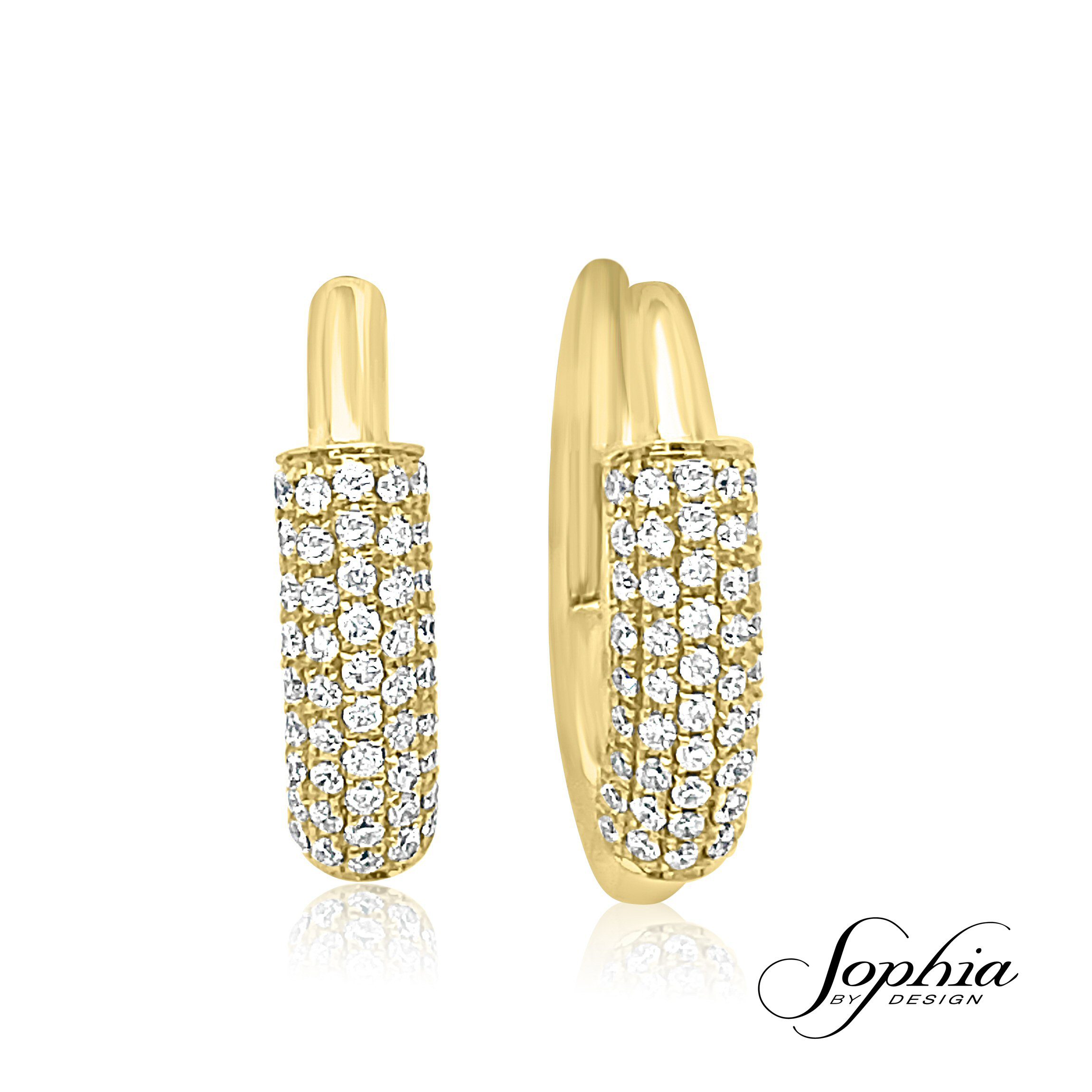 14 karat yellow gold 18 mm hoop earrings with 0.62 cttw round brilliant cut diamonds.