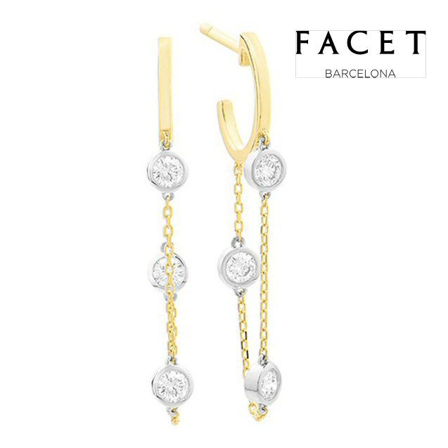 14 karat yellow gold small post hoop earring with .50cttw “diamonds by the yard” dangling front and back from the hoop.