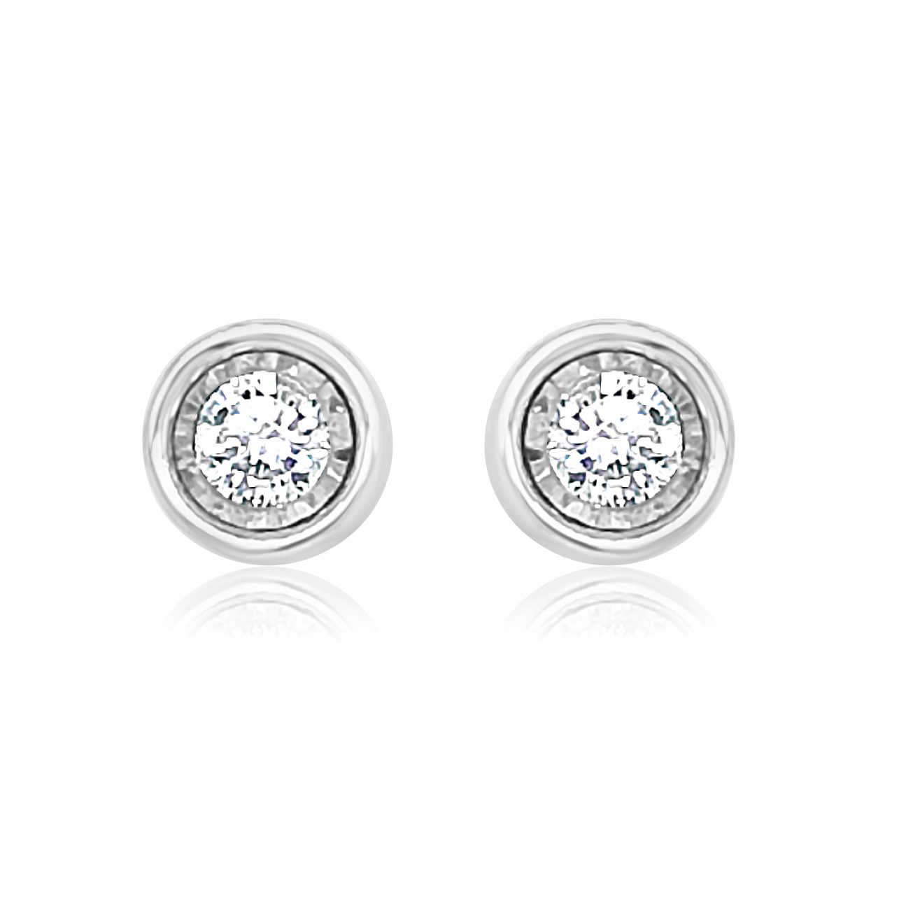 14 karat white gold 0.46 cttw. diamond earrings that have been illusion bezel set to look like 2.0 cttw earrings. The round brilliant cut diamonds are SI clarity and H-I color.