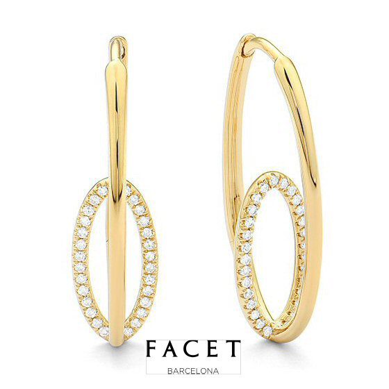 14 karat yellow gold 1″ long oval hoops with 0.20cttw round brilliant cut diamonds, pave set in a smaller oval within the oval.