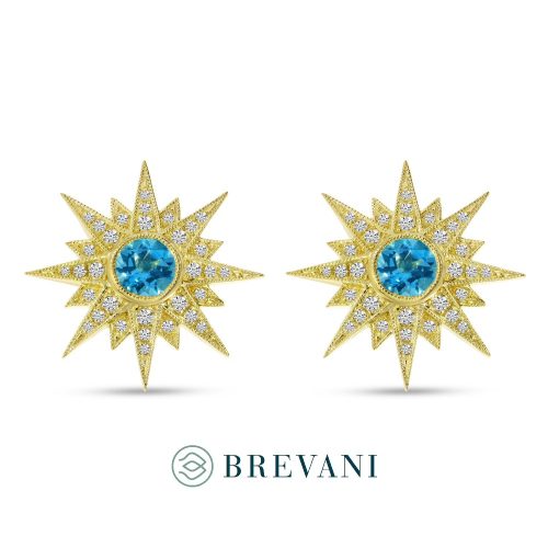 Beautiful natural Opal post earrings in14 karat yellow gold with two 6 mm opals weighing 0.96 cttw and 0.10 cttw diamonds.