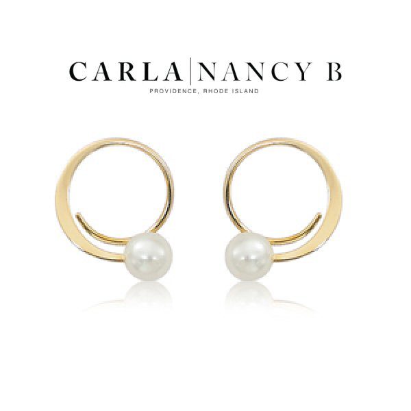 14 karat yellow gold angled hook freshwater pearl earrings. Made in the USA. Made by Carla B.