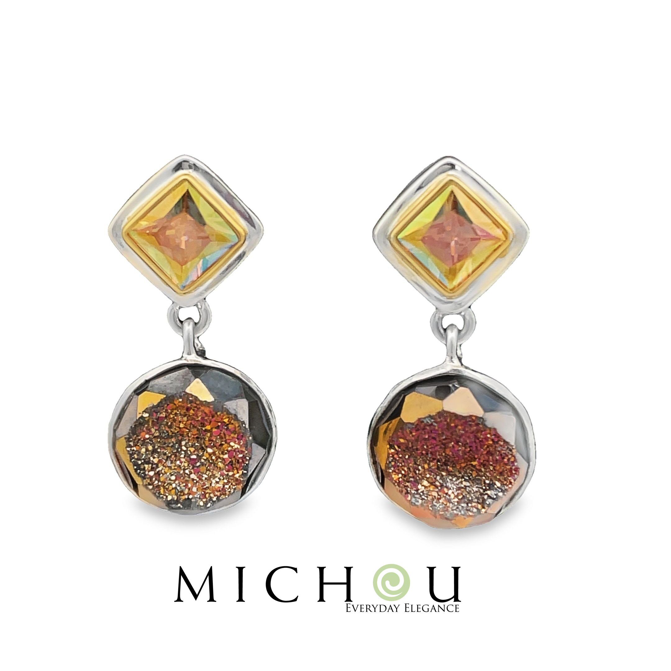 Sterling silver and 22 karat gold vermeil with druzy and topaz.