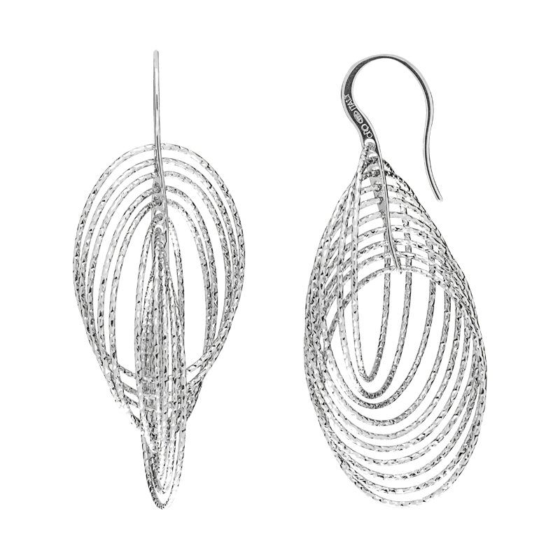 Sterling silver earrings with 10 one inch ovals, interlocking like Gold In Art Jeweler’s style #HO64. Rhodium plated to be hypo-allergenic and tarnish free. Refunds or Exchanges for 30 days on all silver jewelry.
