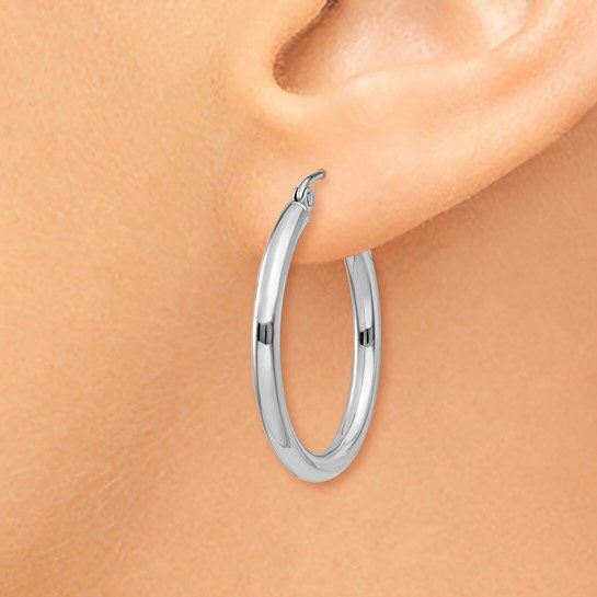 Leslie’s14 karat white gold 2.5mm hoop earrings. 1″ in diameter. Lifetime Warranty.