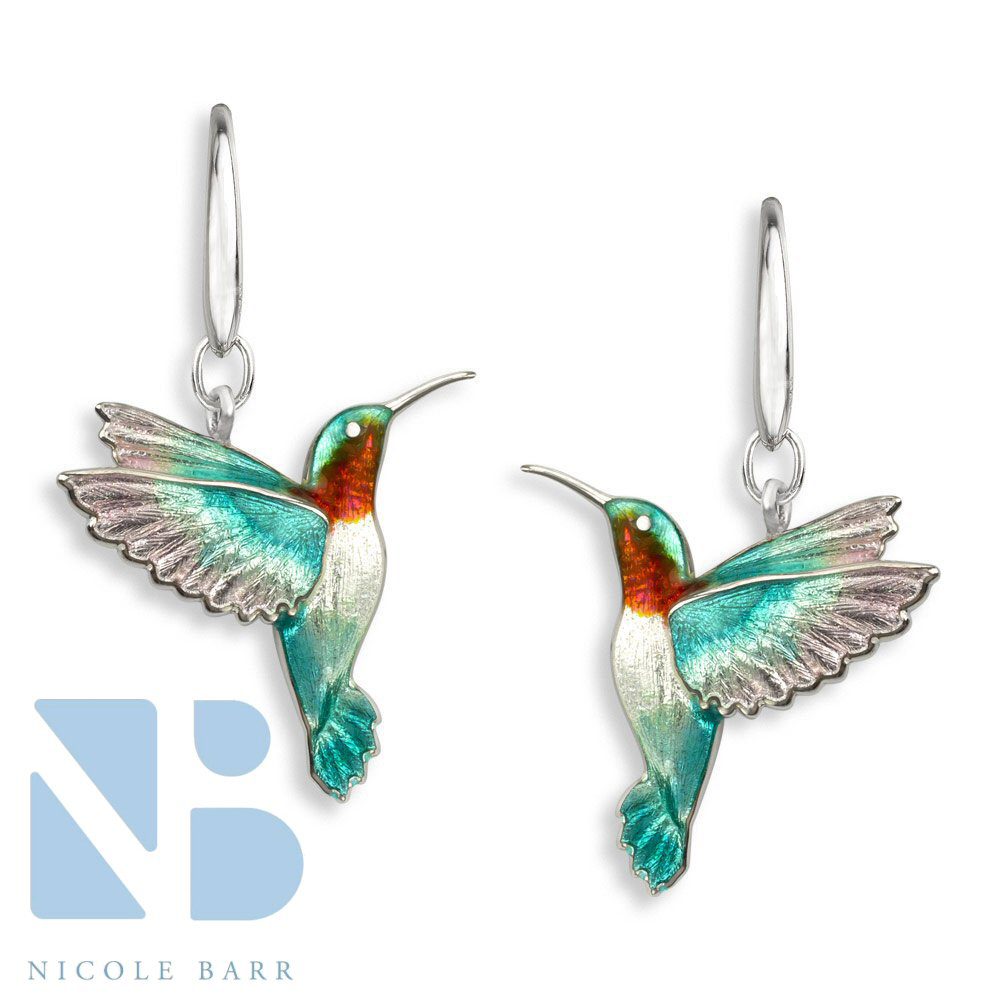 Sterling Silver Hummingbird lever back earrings. The red and the green enamel is applied using the Champlevé technique. Champlevé-A French word for “raised field”,One year warranty Returns and exchanges for 30 days on silver jewelry.