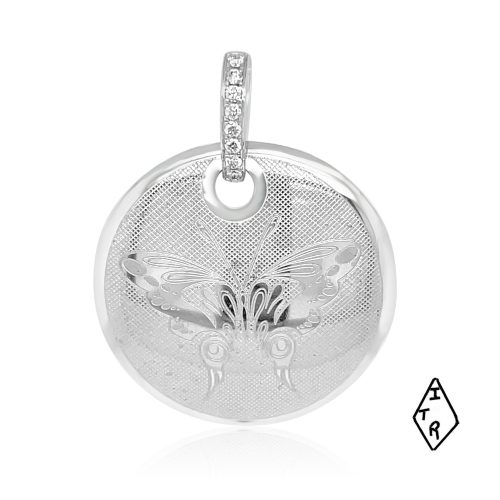 One of a kind seahorse pendant made by Gold In Art Jewelers. The seahorse is somewhat abstract in the shape of a circle with a .01ct round brilliant cut diamond flush set in the eye. At the bottom of the seahorse is a 10mm dyed peacock freshwater pearl. Stamped 18K