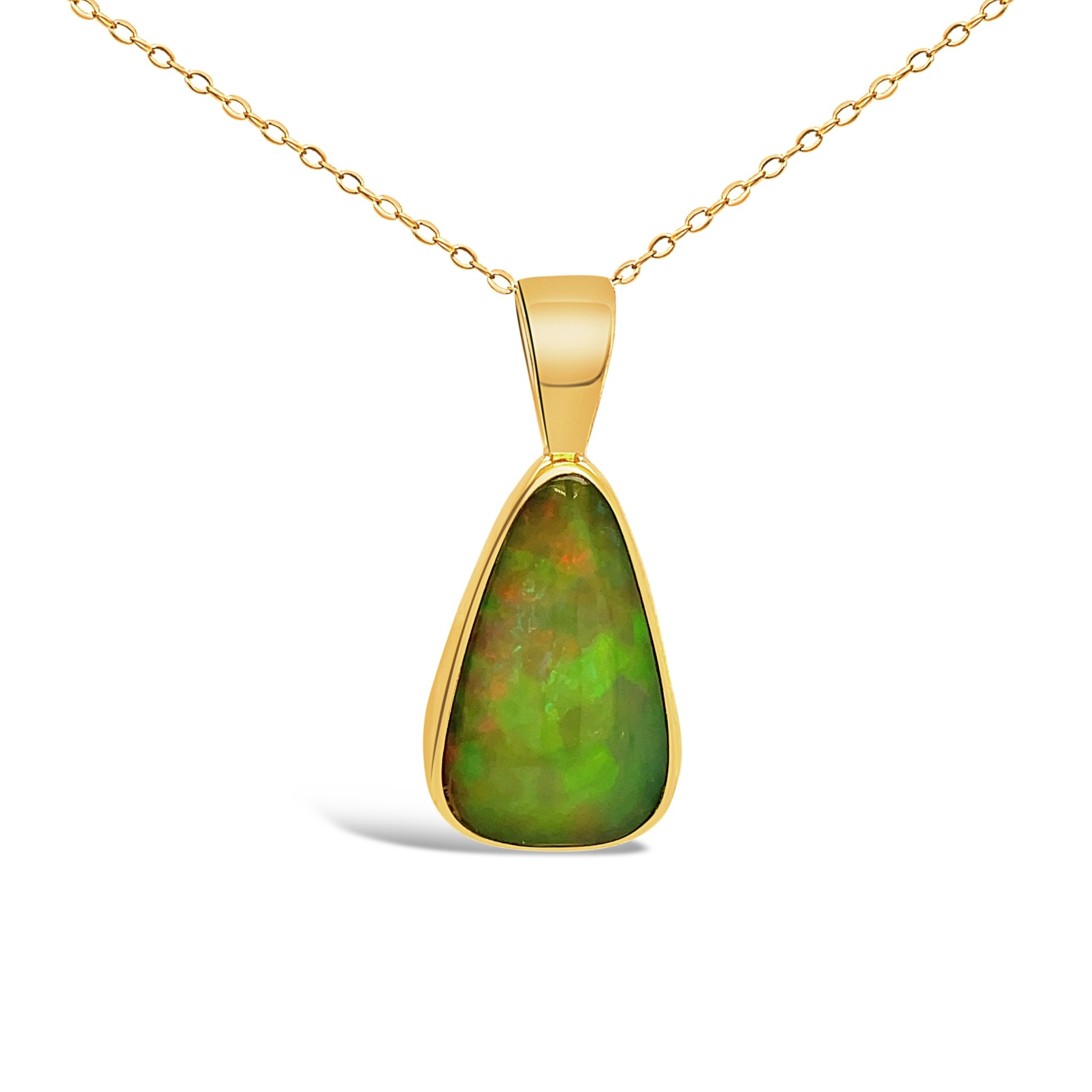 14 karat yellow gold 3.0 carat natural black Australian opal necklace. Chain not included