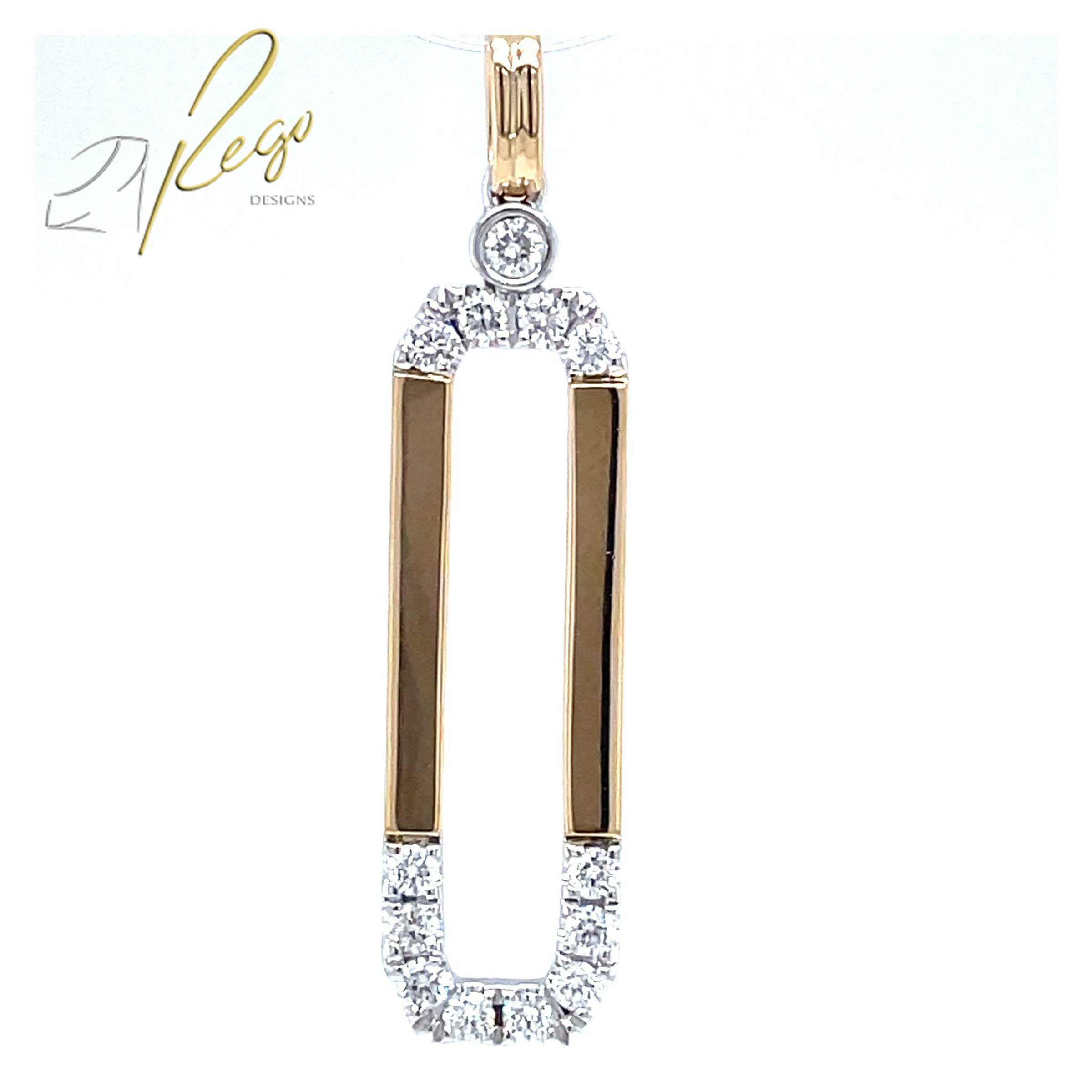 Modern 14 karat yellow and white gold rectangular pendant with 0.33 cttw round brilliant cut diamonds.