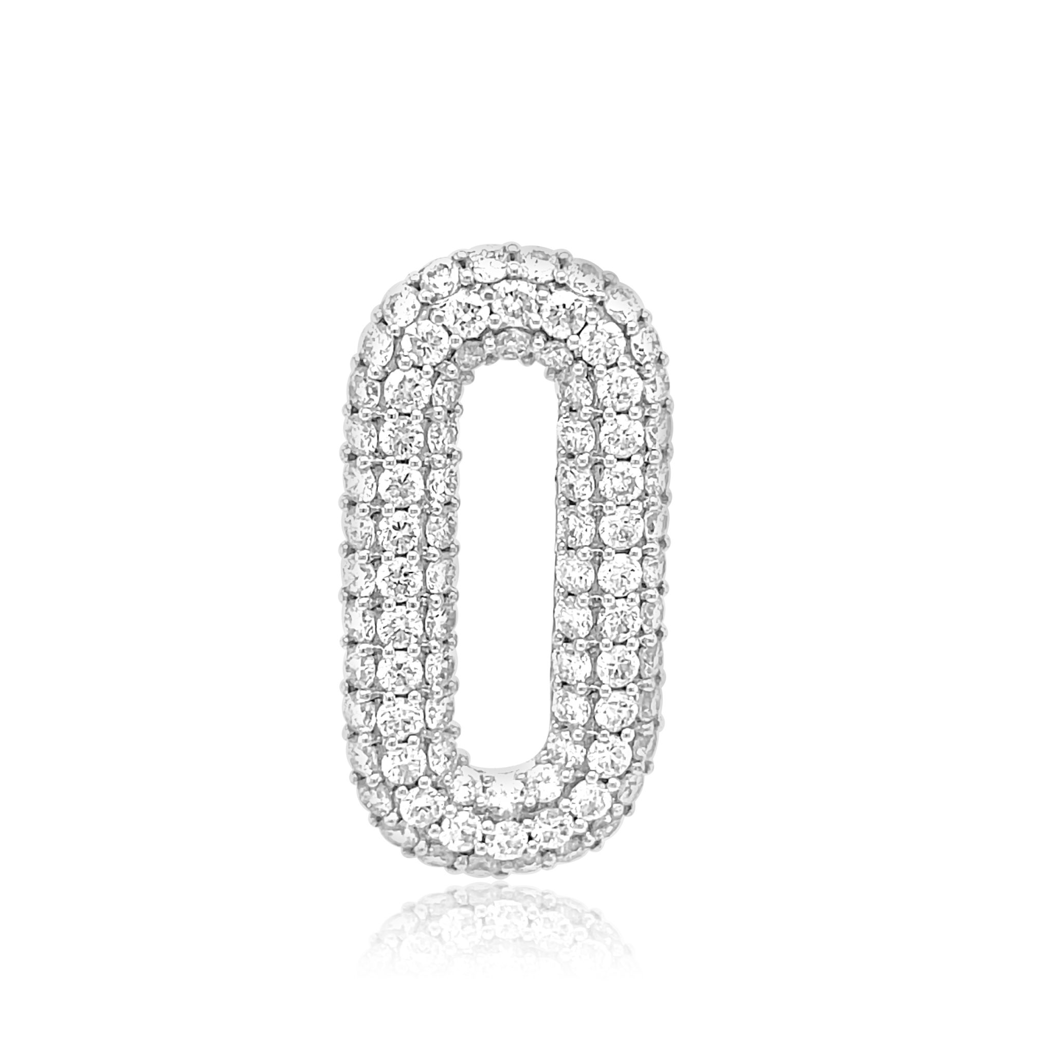 14 karat white gold open, oval/rectangular pendant with 1.54cttw pave set round brilliant cut diamonds.