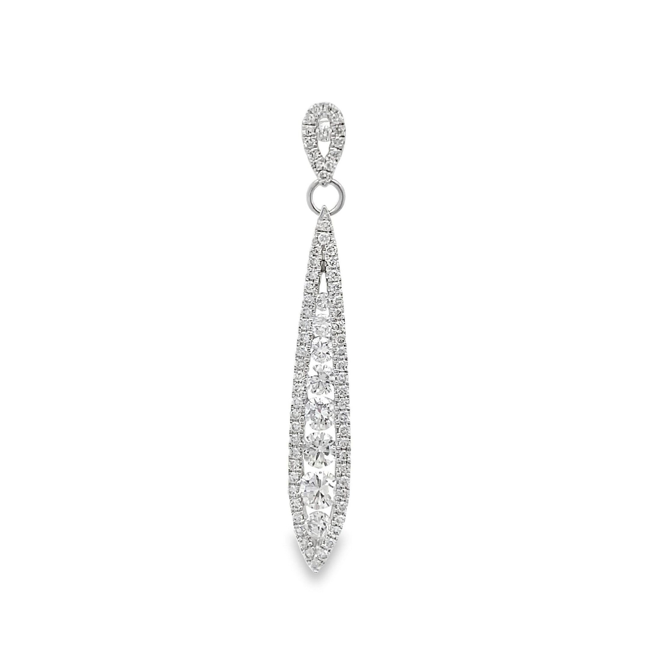 14 karat white gold pendant with 0.66cttw graduating, “floating” diamonds. VS clarity, F color.