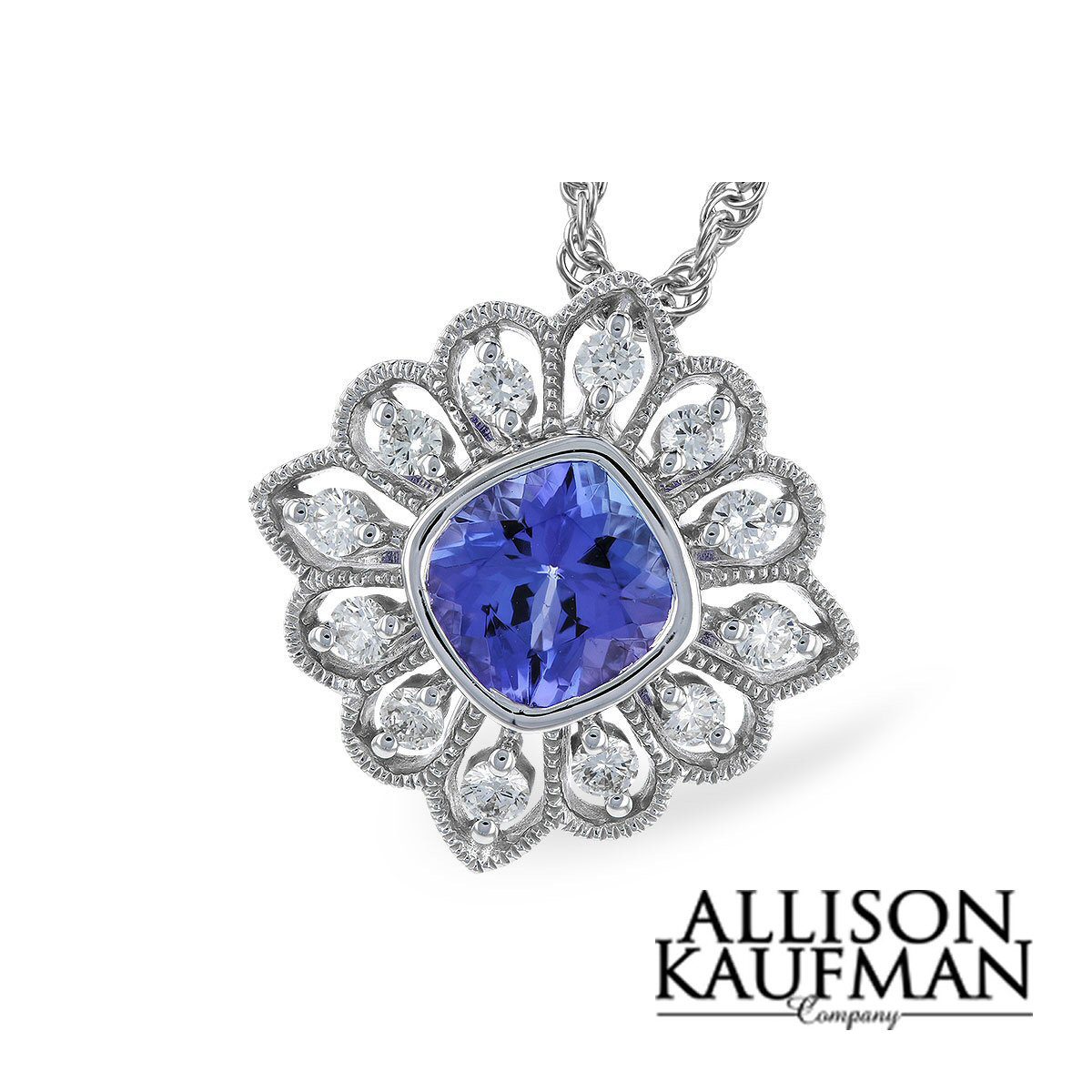 Gorgeous and lovely 14 karat white gold tanzanite and diamond necklace. The centerpiece is a gorgeous 0.98 carat tanzanite accented by 0.26 cttw round brilliant cut diamonds.
