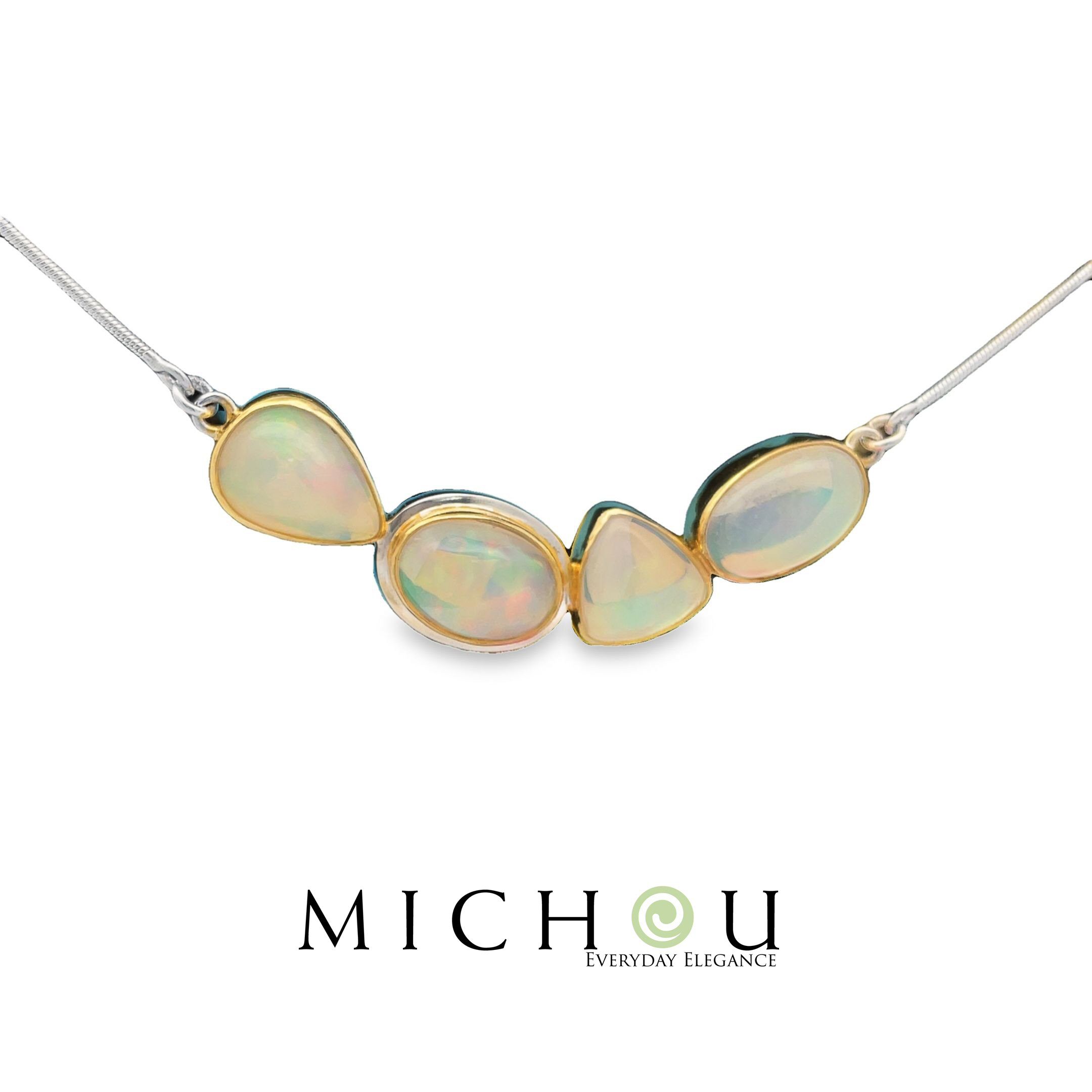 Sterling silver and 22 karat gold vermeil with uniquie shaped ethiopian opals.