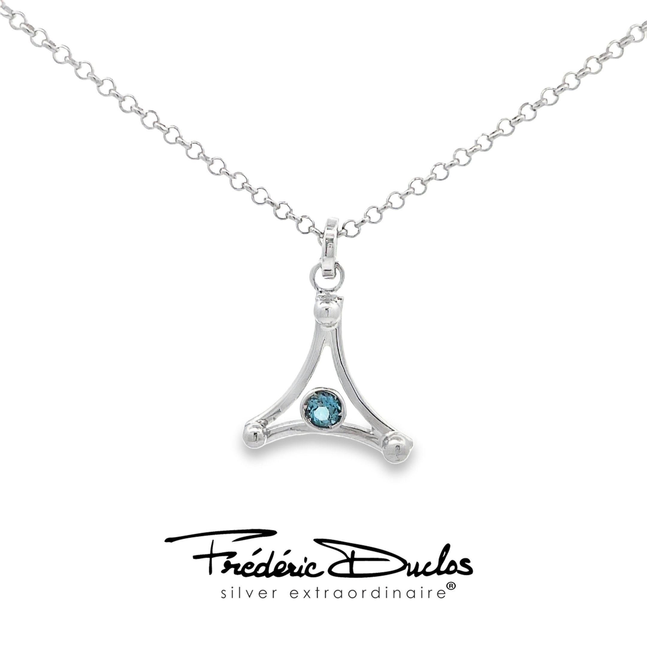 Sterling silver and blue topaz triangle “Trek” necklace by Frederic Duclos.