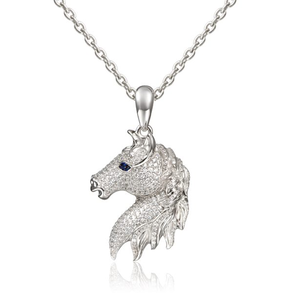 SS horse pendant with CZ and blue eye. 18″ chain included.