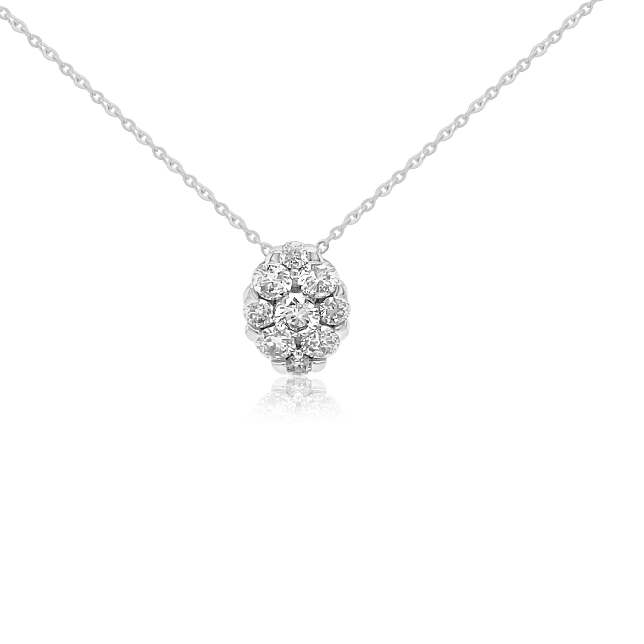 Stunning 14 karat white gold marquise shaped cluster necklace with 0.48cttw round brilliant cut diamonds. 18″ chain.