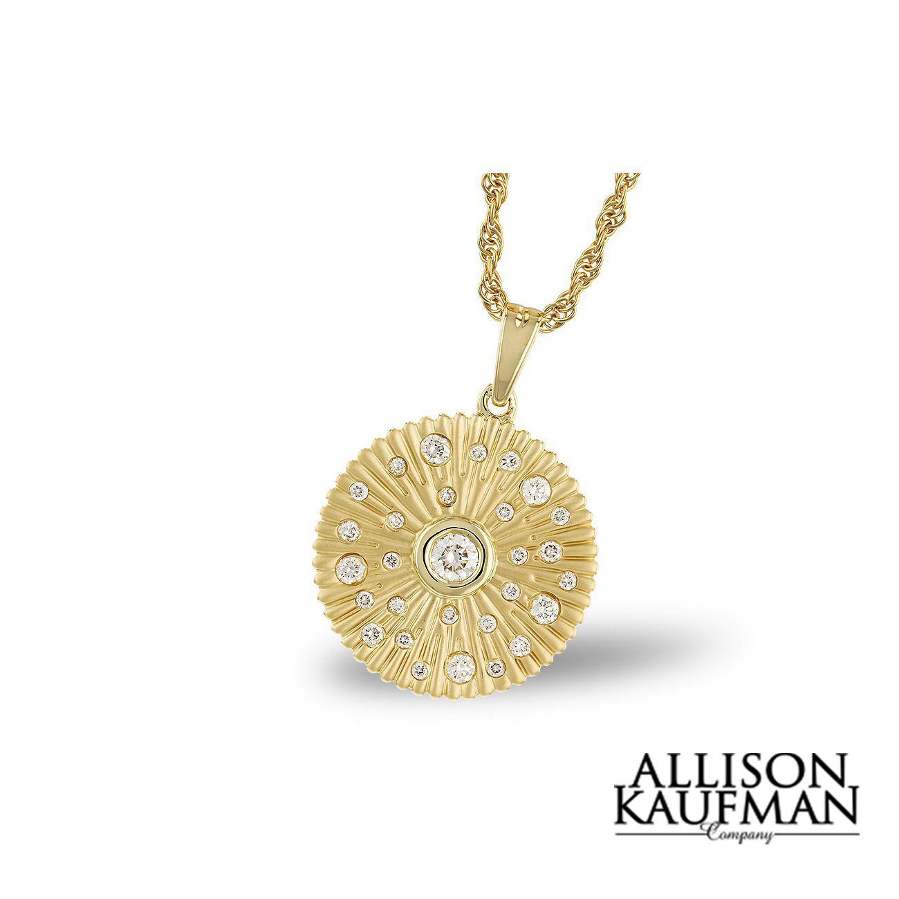 Radiant 14 karat yellow gold diamond “starburst” necklace. There are 0.24 cttw diamonds bezel set on the pendant to give a “starburst” appearance. Minimal and elegant.