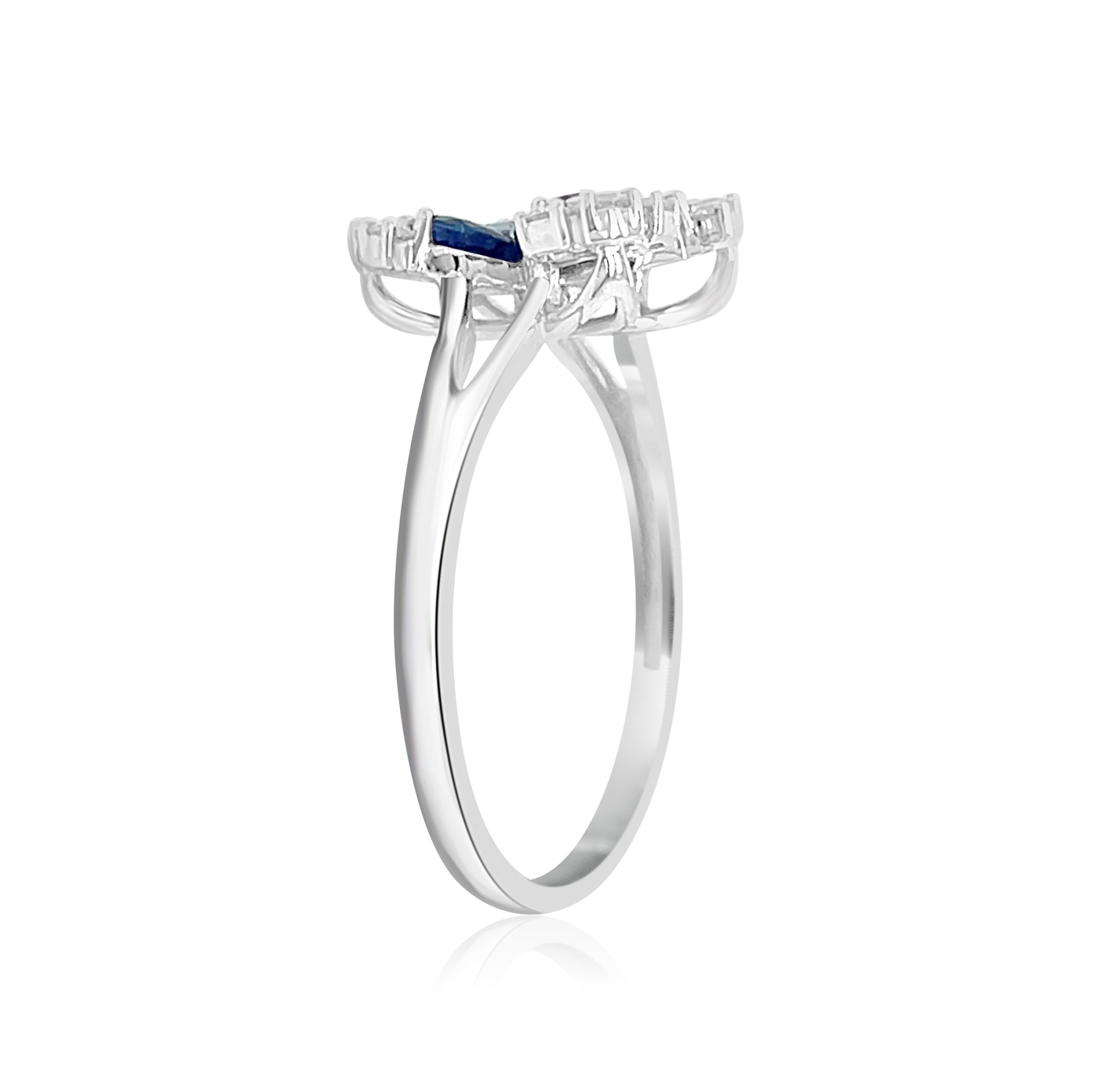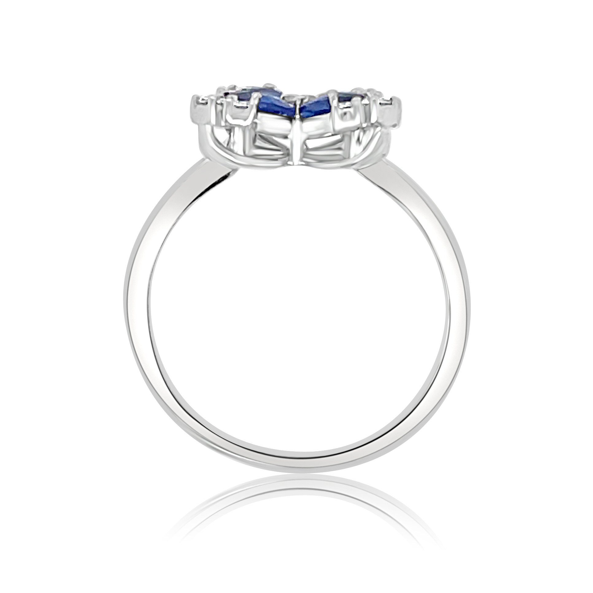 Simply stunning 14 karat white gold sapphire and diamond butterfly ring. Sitting on a split shank, the butterfly wings consist of 0.88cttw sapphires, accented by 0.16cttw round brilliant cut diamonds. A perfect piece for butterfly lovers!