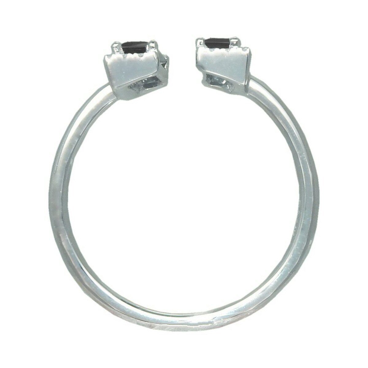 Elevate your style with this gorgeous 14 karat white gold “open” ring with 0.87 cttw baguette shaped black onyx and 0.09 cttw round brilliant cut diamonds.