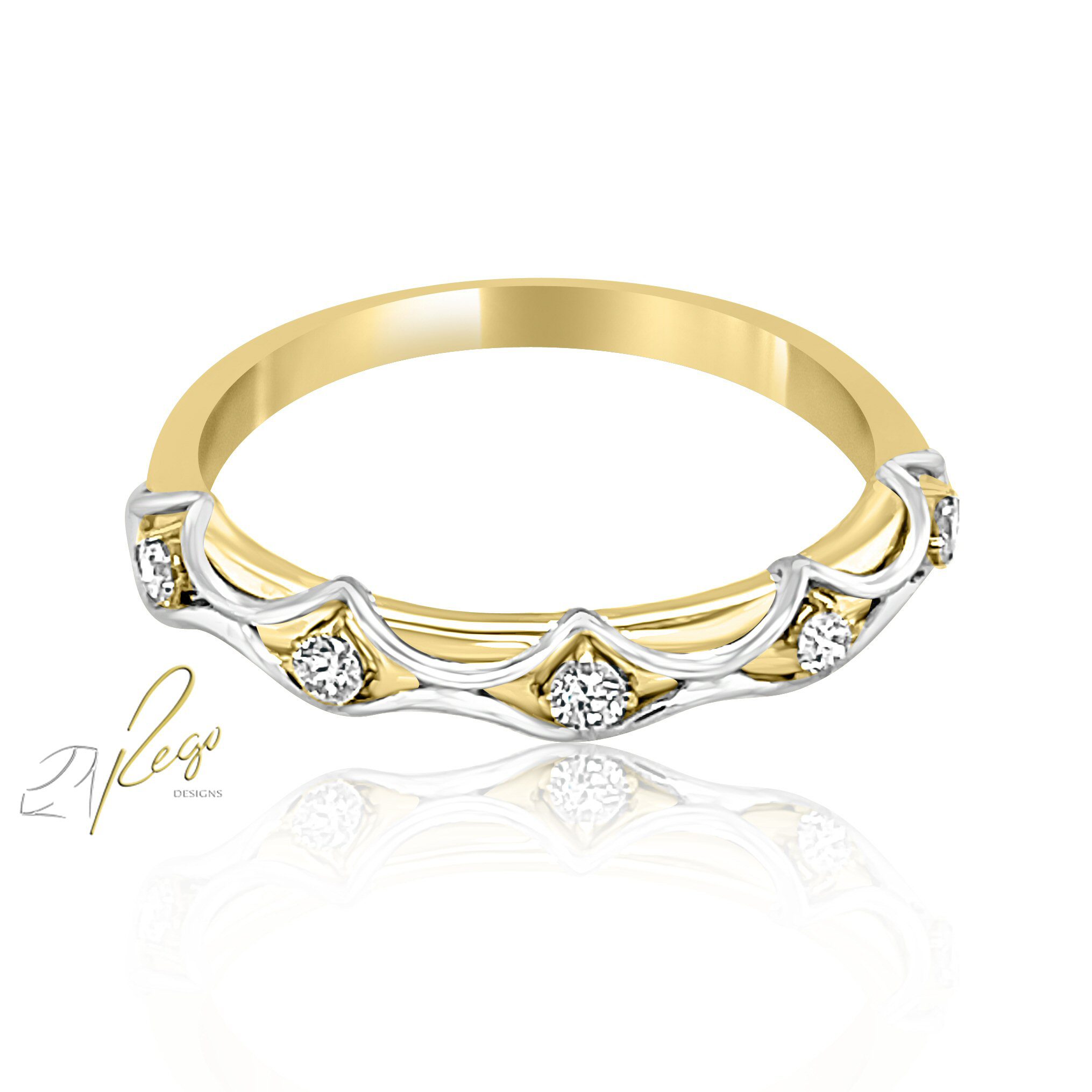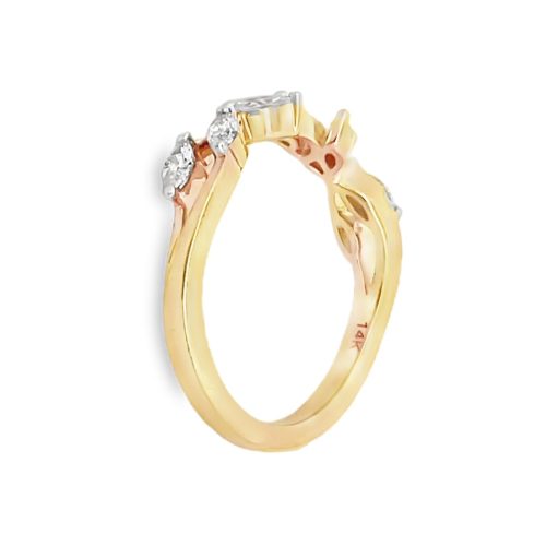 14 karat yellow gold ring with white gold trim that contains 0.14cttw round brilliant cut diamonds