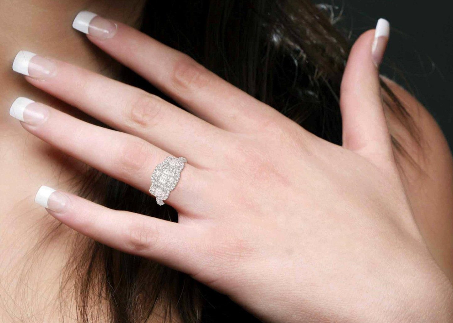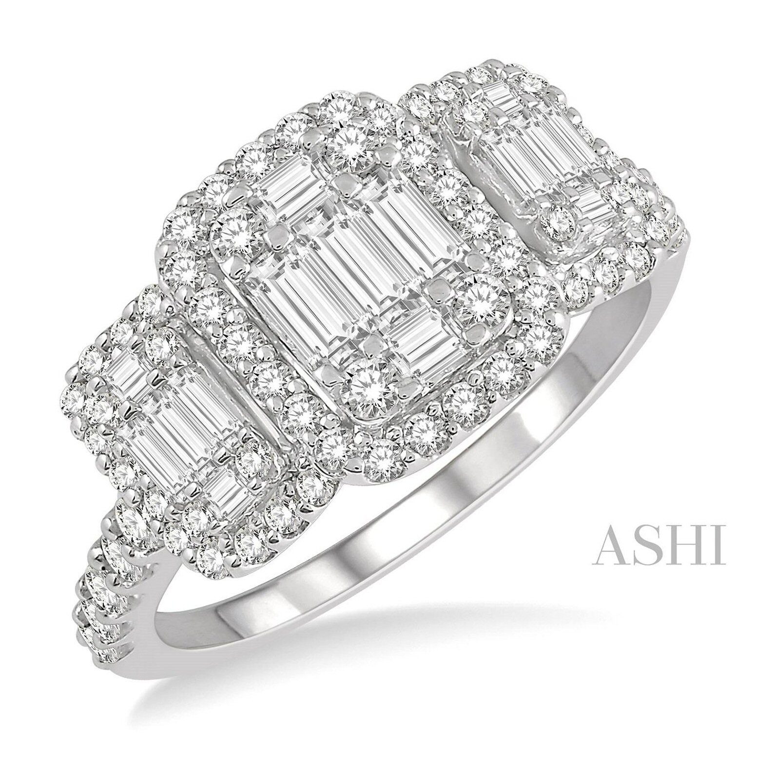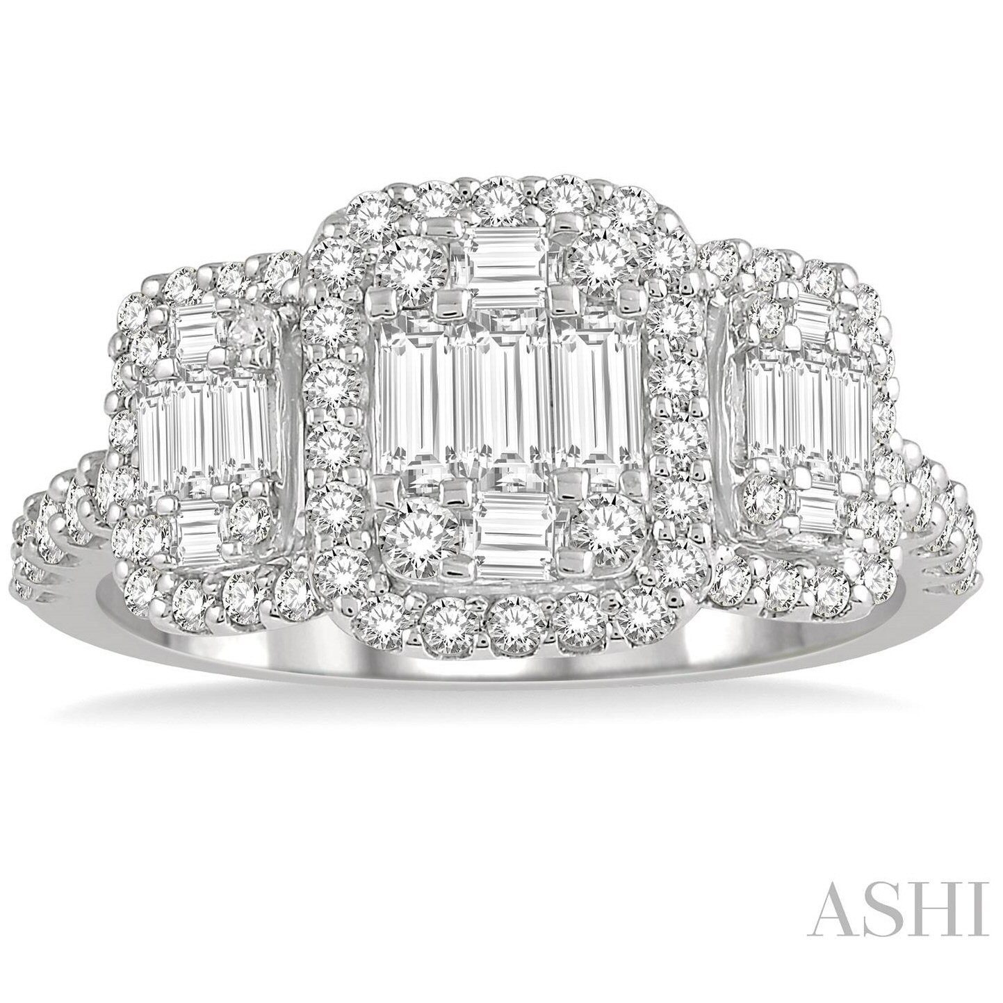 14 karat white gold “3 stone ring” with 1.15cttw diamonds. .70cttw RBC .45cttw baguettes