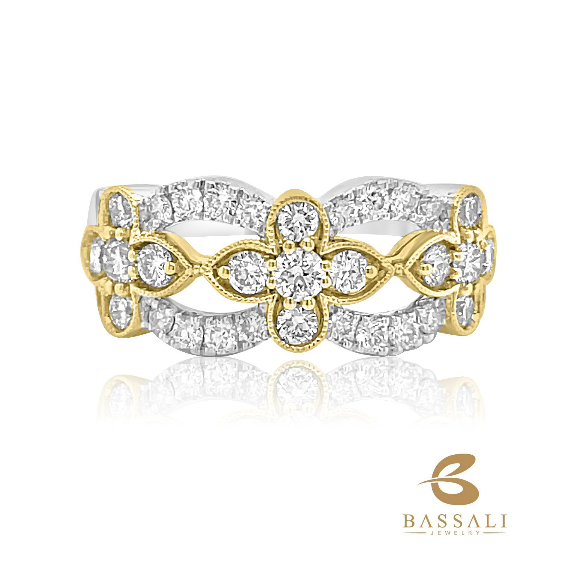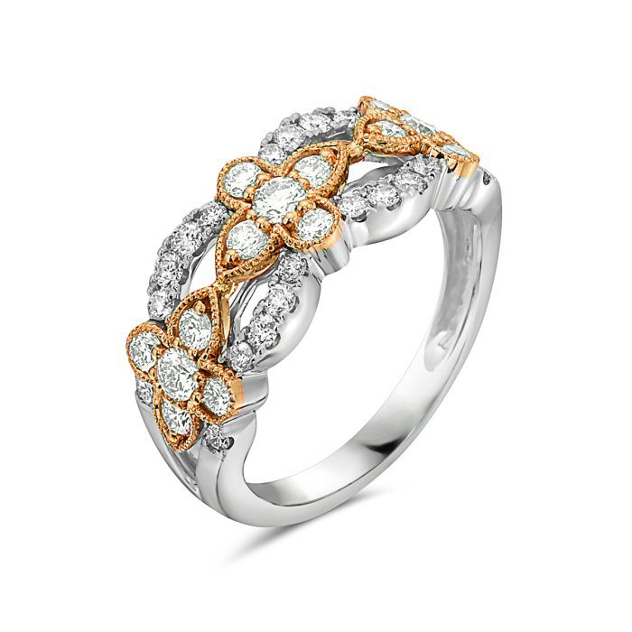Experience timeless elegance with this dazzling 1.0cttw diamond ring. The harmonious blend of shimmering diamonds and rich 14 karat two tone gold accents makes it an eye-catching addition to any jewelry collection. Perfect for celebrating life’s preciousmoments.