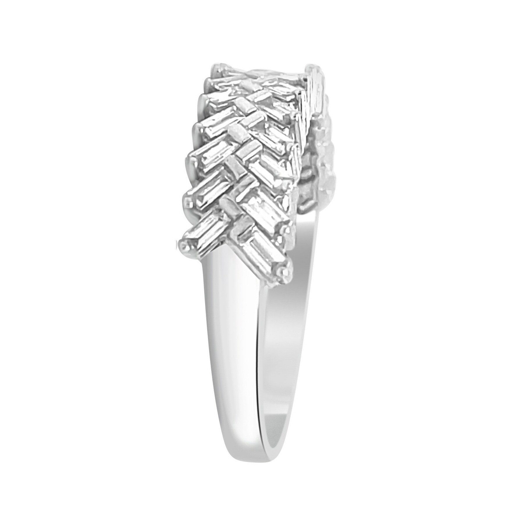 Lovely and unique baguette cut diamond ring. There are .51cttw straight baguettes, set diagonally in 2 rows giving the ring a “feather” or “arrow” appearance.
