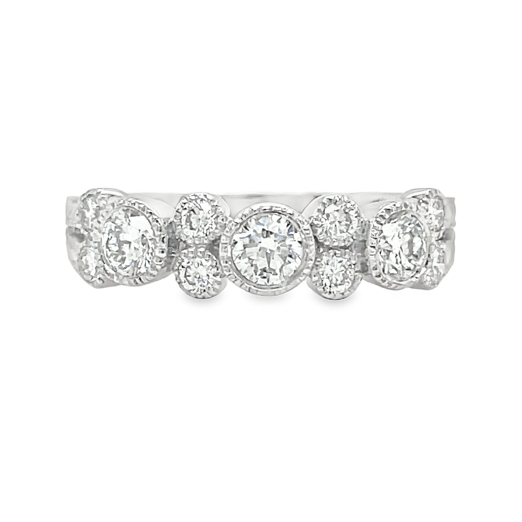 This exquisite 14 karat white gold ring features a stunning array of 0.69cttw of round brilliant cut sparkling diamonds set in a beautifully crafted band by S. Kashi. Perfect for special occasions or as an everyday statement piece, this ring exudes elegance and sophistication.