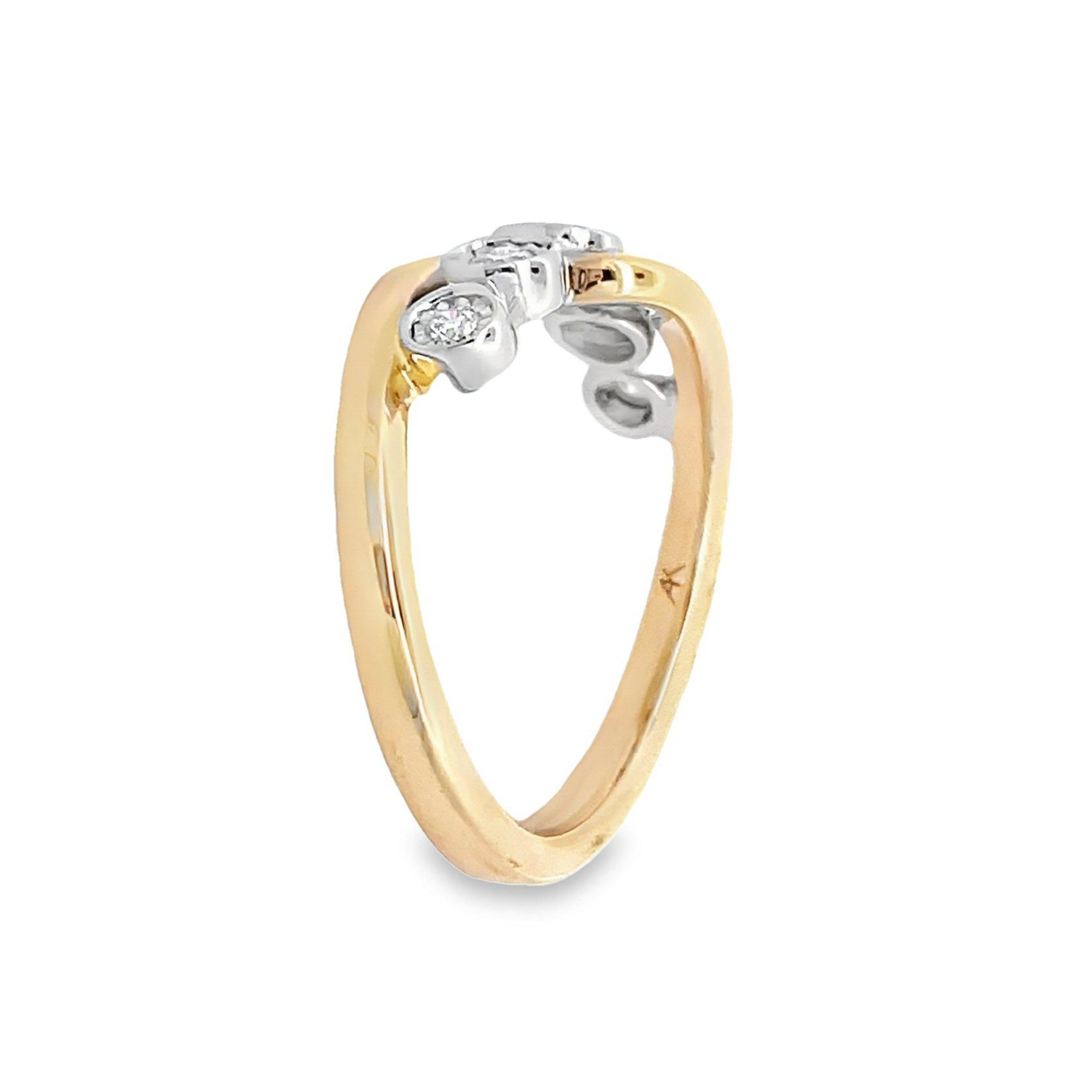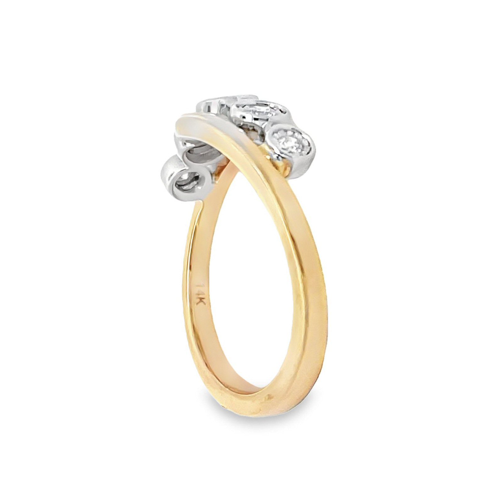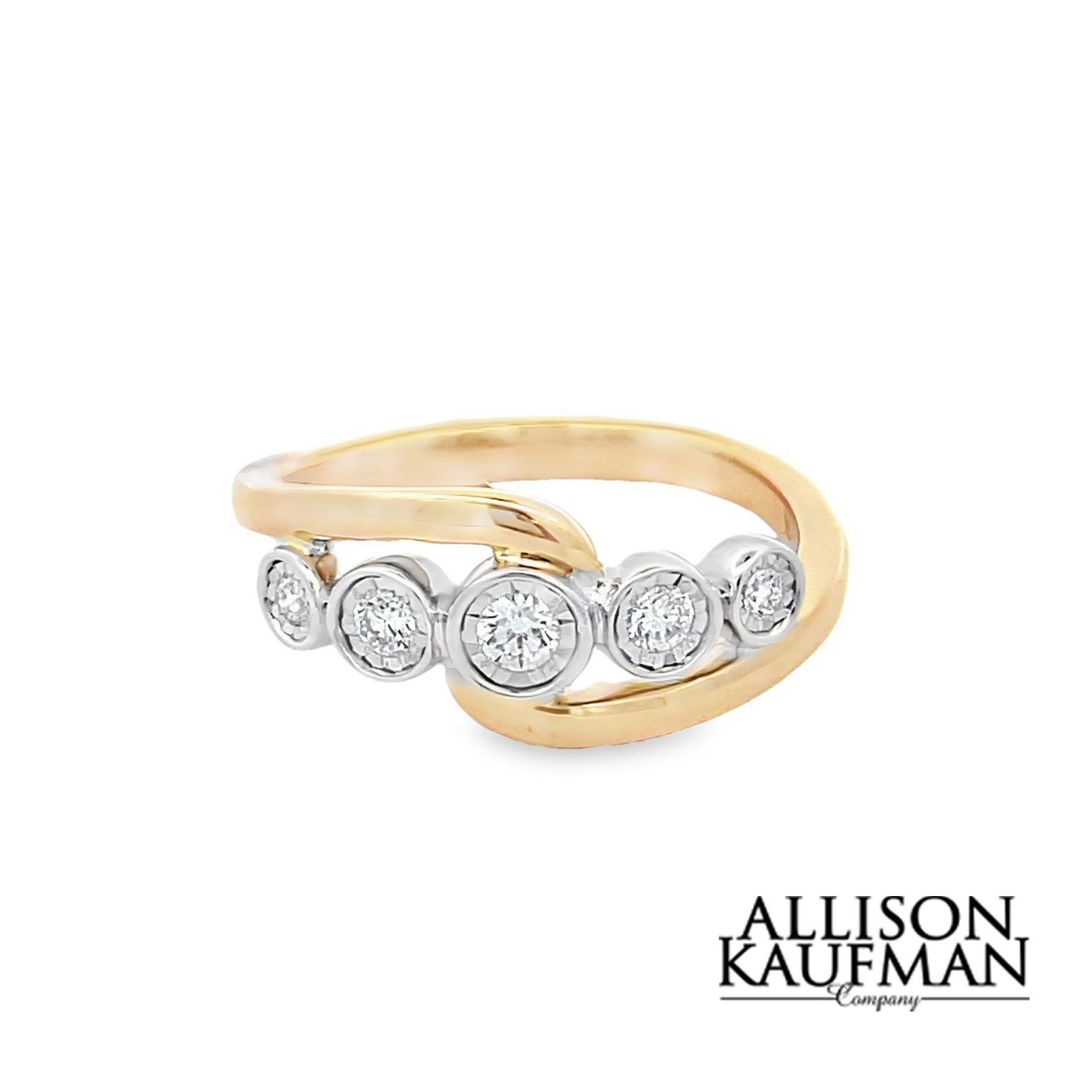 Crafted with precision, this beautiful ring 0.21cttw diamond ring boasts five dazzling diamonds encased in a chic 14 karat two-tone band. Ideal for adding glamour to any outfit, it’s the perfect accessory for those who appreciate fine craftsmanship and timeless beauty.