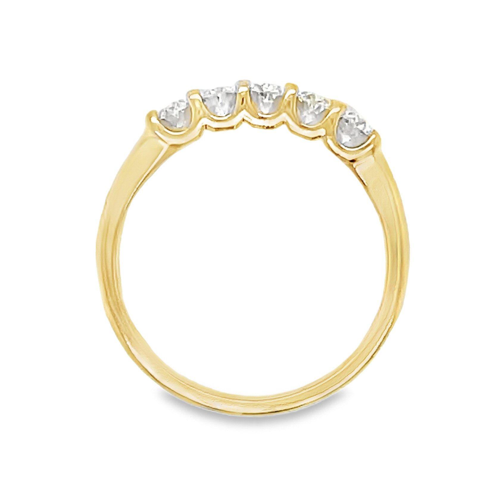 Radiate sophistication with this beautiful 14 karat yellow gold diamond ring. The gleaming gold band is adorned with 0.75cttw dazzling oval cut diamonds that offer timeless beauty and unmatched sparkle. It’s the perfect accessory for those who appreciatefine jewelry.