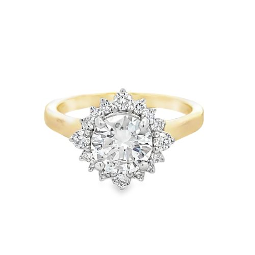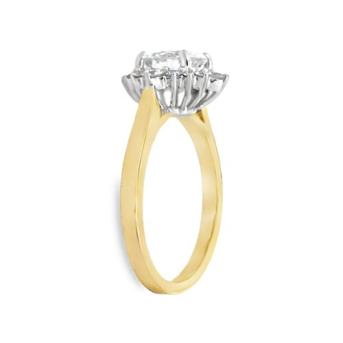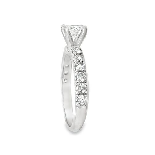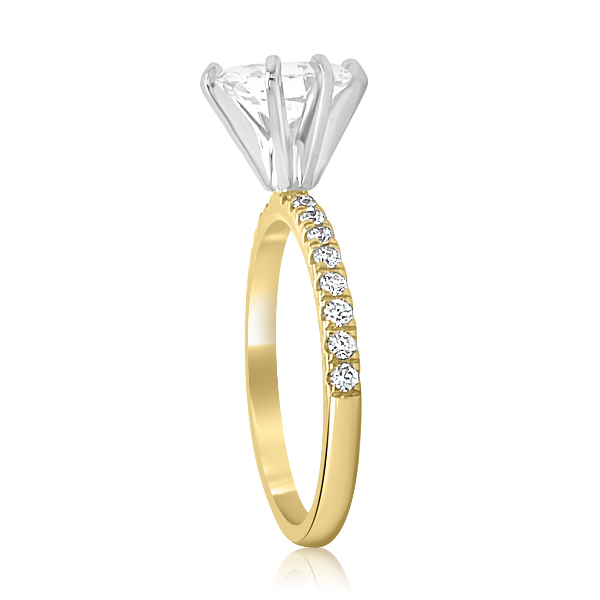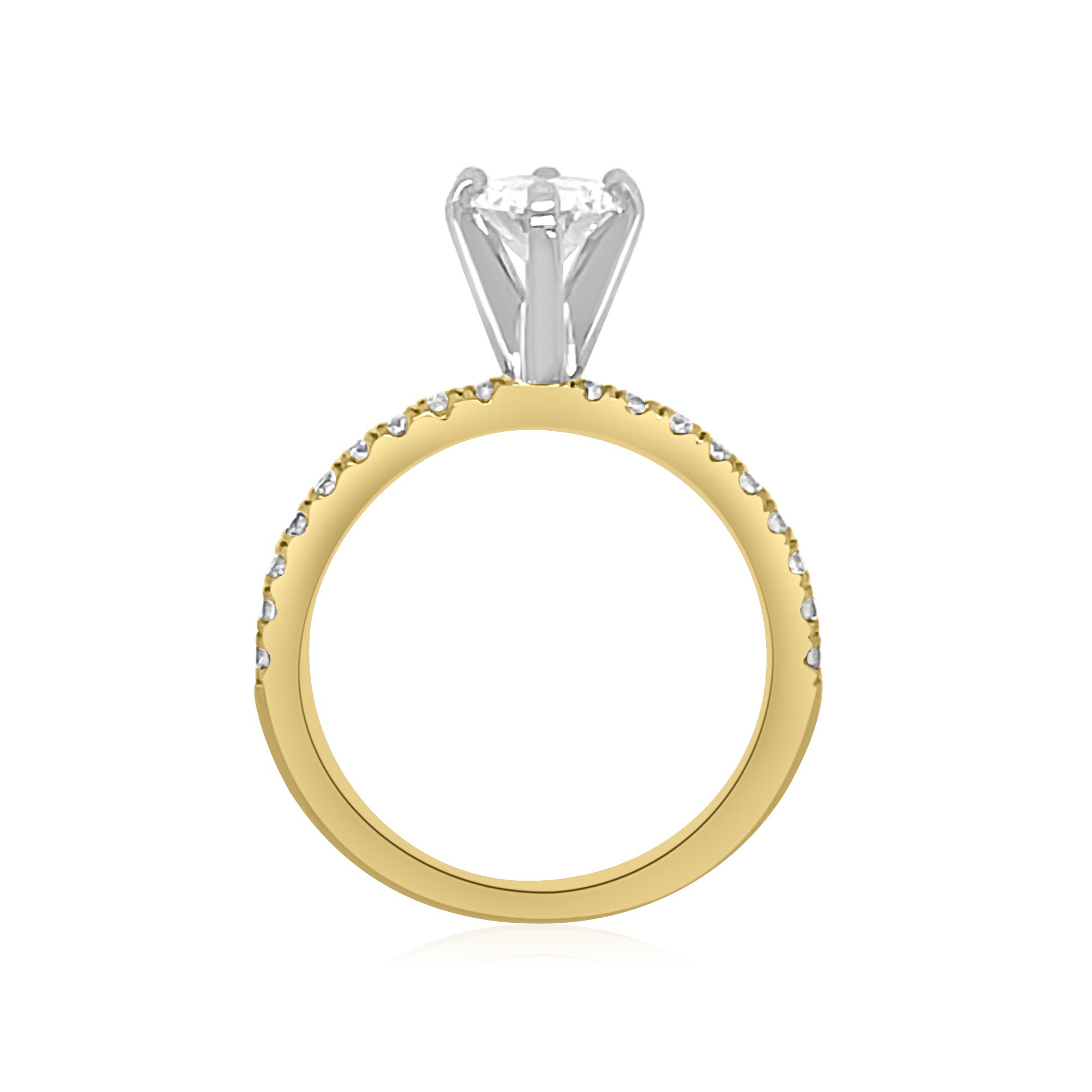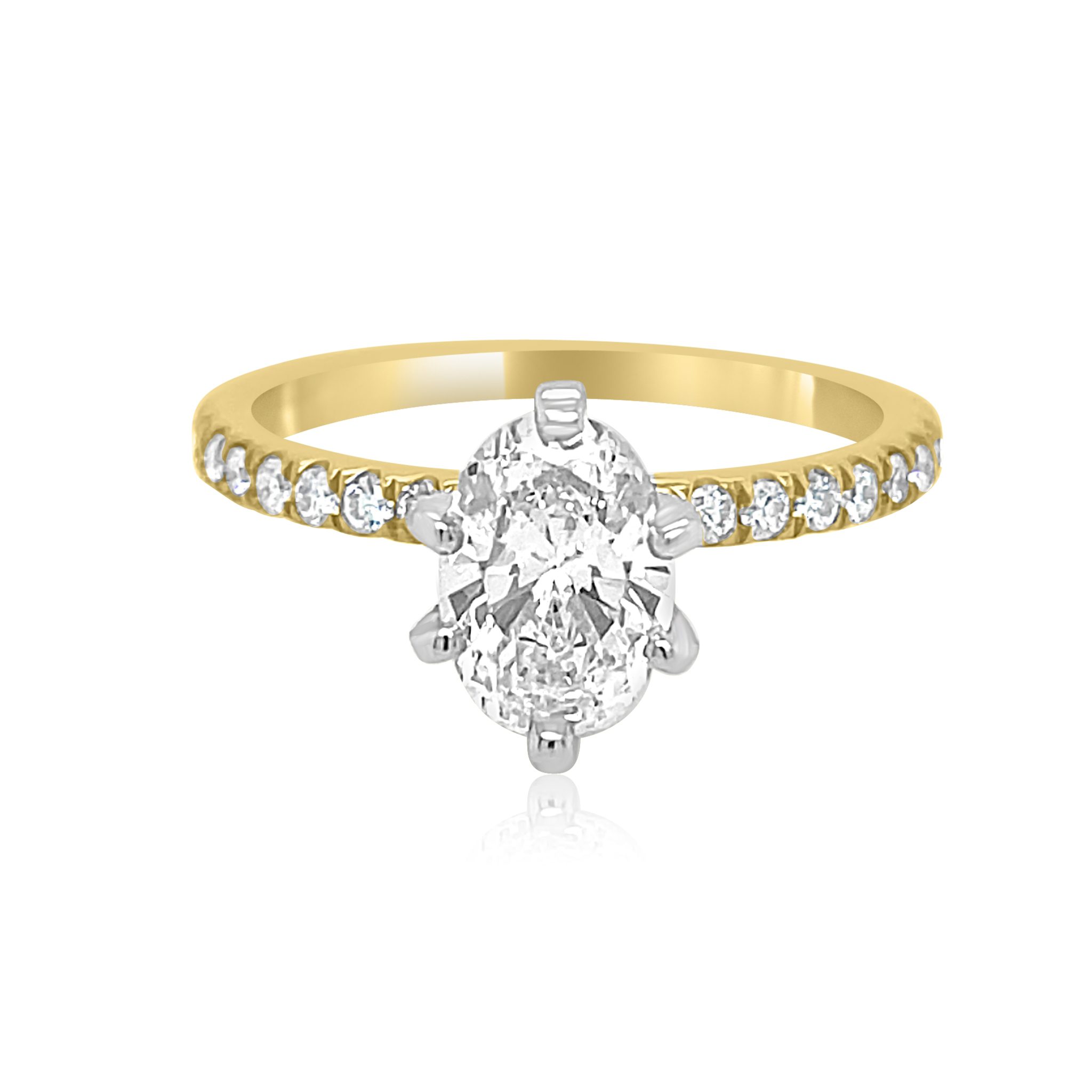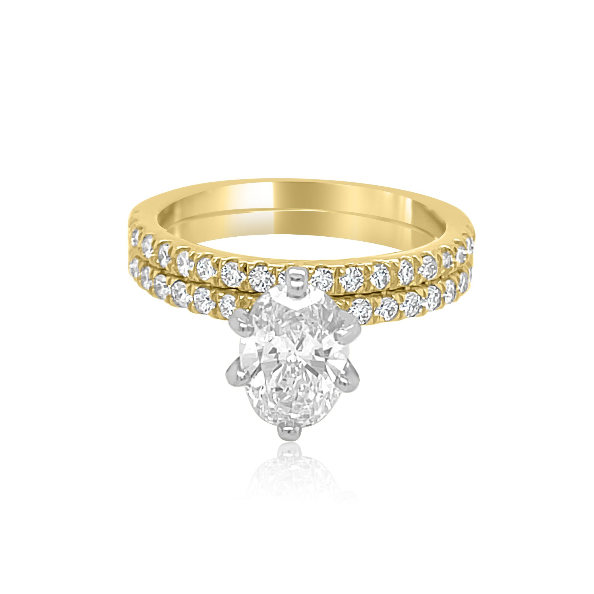 14 karat yellow gold 1.25cttw diamond ring. The center stone is a gorgeous 1.0 carat oval cut diamond of VVS2 clarity and I color. It is certified as such by Gemological Institute of America, certificate #5222921079. There are .25cttw round brilliant cutdiamonds prong set on either side of the oval. The diamonds are SI clarity and G color and accent the oval diamond beautifully. Matches R1015BY. The center diamond may be purchased separately for $7,400.