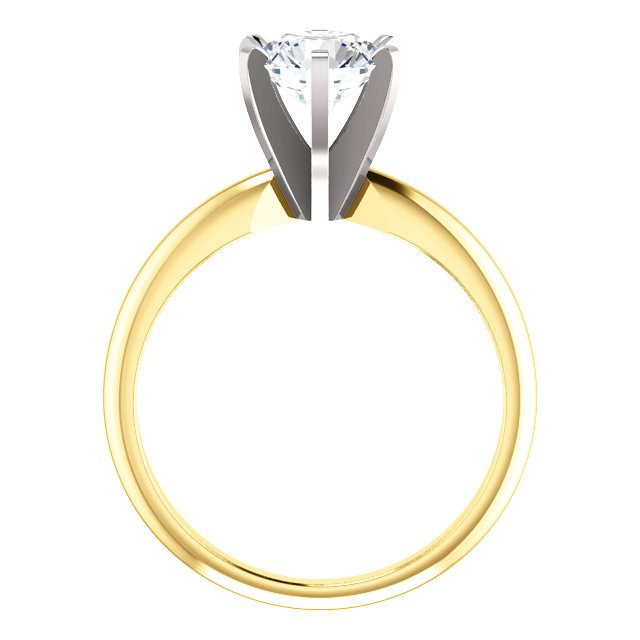 14 karat yellow and white gold Tiffany style engagement ring with a 1.22 carat round brilliant cut diamond of I1 clarity and K color. It is certified as such by Gemological Institute of America certificate #6455977941. The diamond may be purchased separately for $6,300.