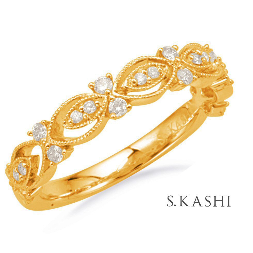 0.23 cttw diamond band.Delicate open diamond band with ovals in 14 karat yellow gold by S. Kashi.
