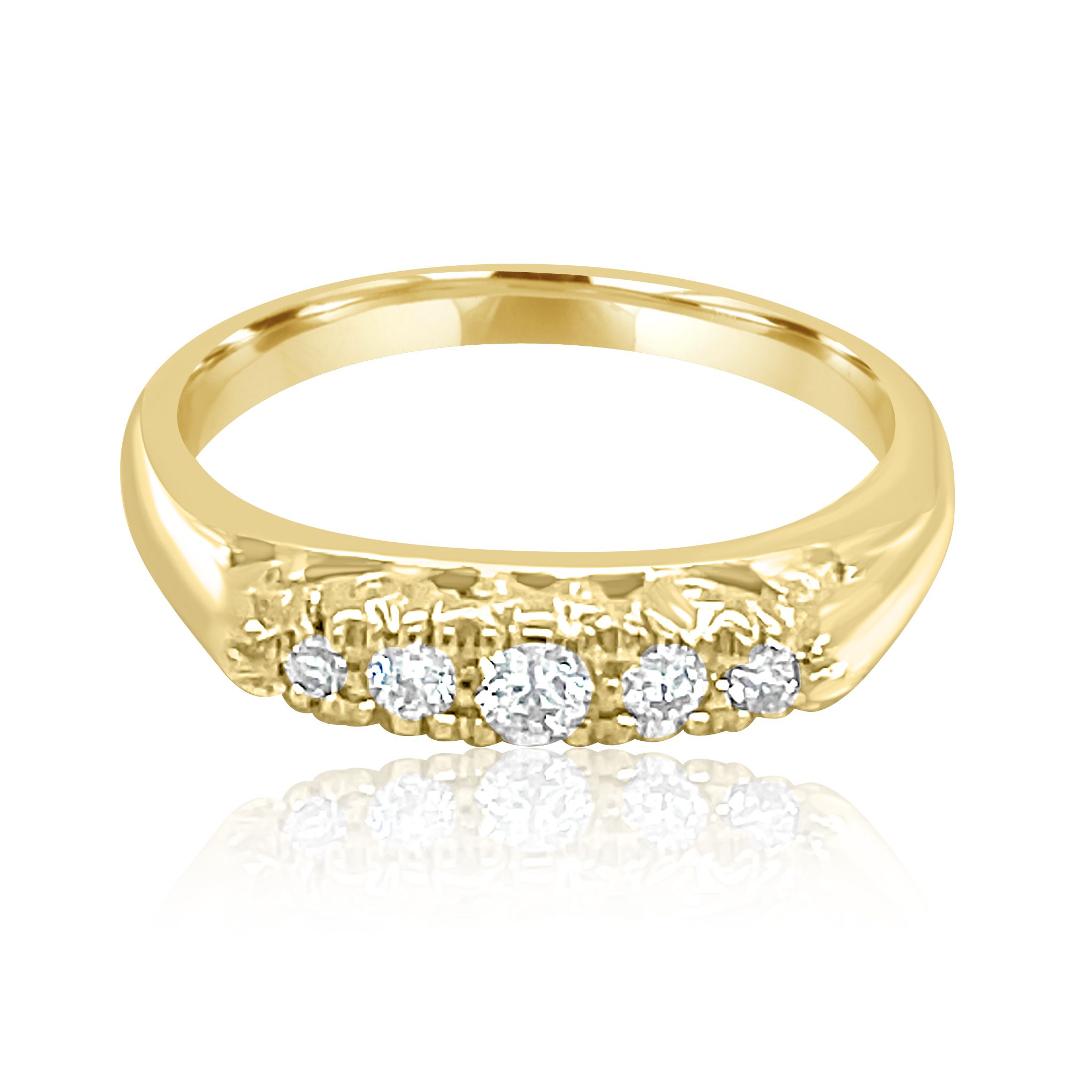 14 karat yellow gold 5 stone band with 0.16cttw round brilliant cut diamonds.